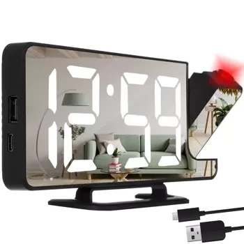 Budzik Zegar Cyfrowy Zegarek Projektor LED Lustro IZOXIS
