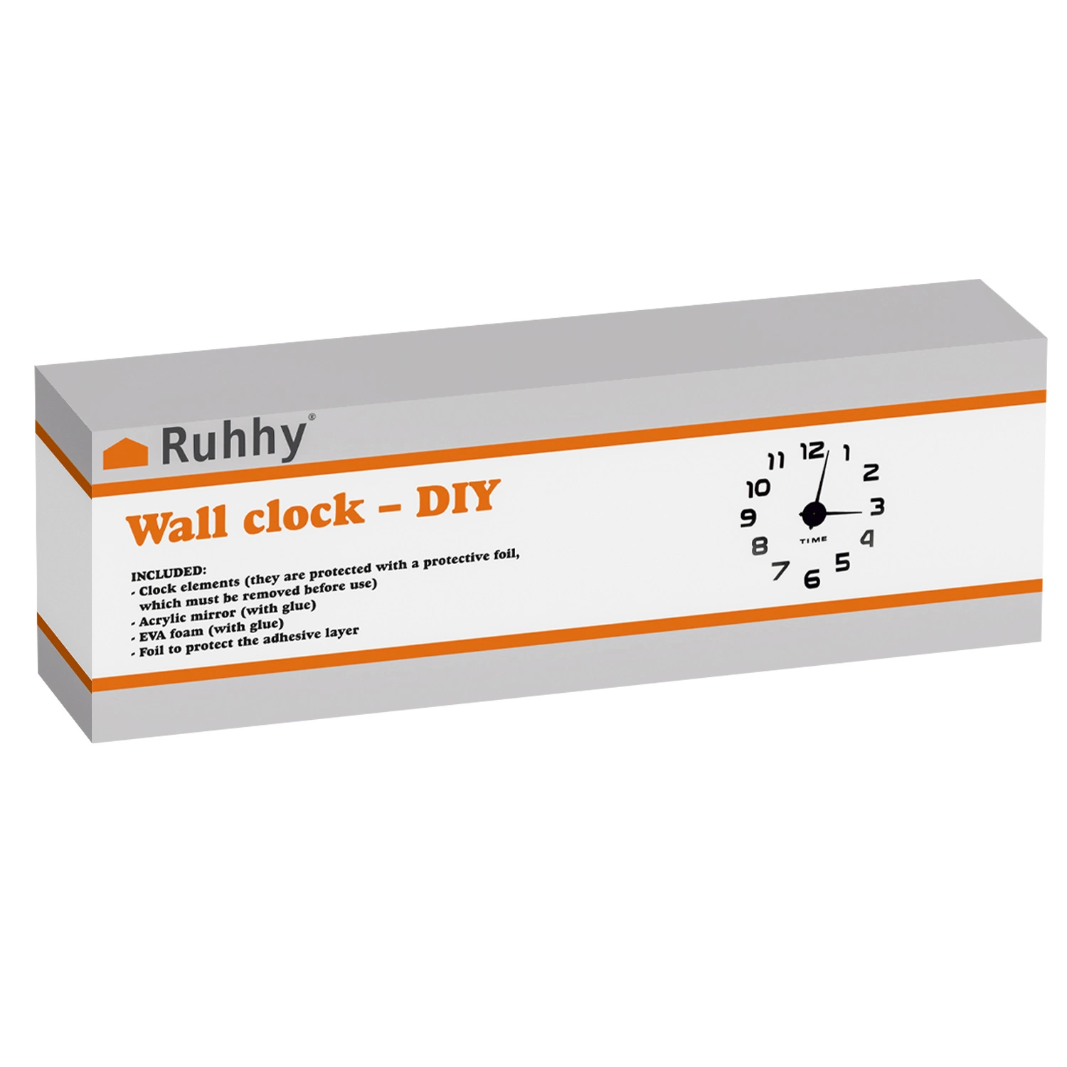 Zegar do samodzielnego montażu DIY. Piękny i bardzo efektowny z wysokim połyskiem. Zegar najlepiej wygląda mając średnicę od 60 (wskazówki blisko cyfr) do 130cm. Poszczególne cyfry montowane są na taśmę samoprzylepną. Zegar pasuje do każdego wystroju wnętrz zwłaszcza loft.