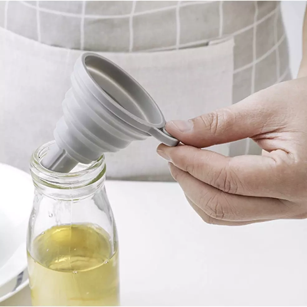 - SPECYFIKACJA - kolor: szary; materiał: silikon; składany: tak; możliwość zawieszenia: tak; wymiary: 7x8cm; średnica wlewu: 6,5cm; średnica wylewu: 1,1cm; waga: 0,02kg; waga w opakowaniu: 0,026kg.