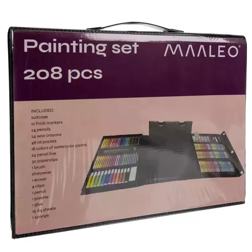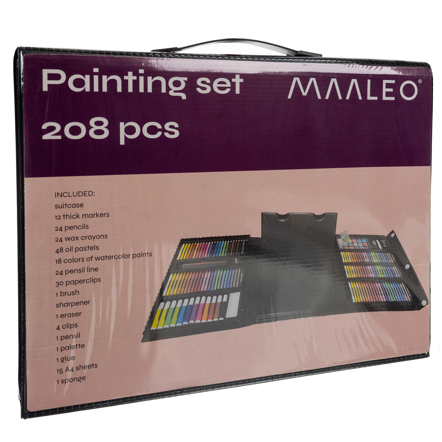Zestaw do malowania dla dzieci, artystyczny plastyczny, kredki w czarnej walizce 208 elementów MAALEO!