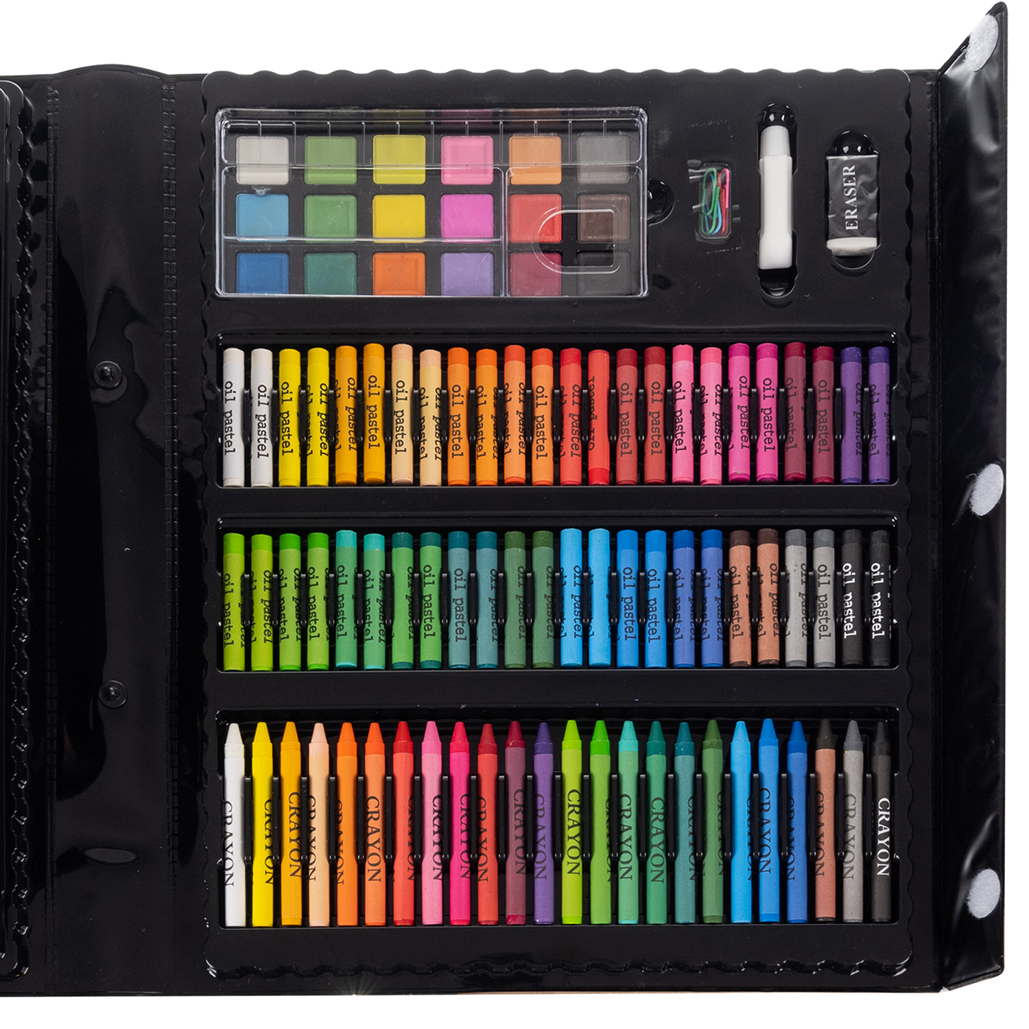 ✔️ przybory wystarczą na długo - to aż 208 elementów – gigantyczny zestaw malarski z kredkami w walizce, farbami, pisakami i pastelami, wystarczy na wiele tygodni intensywnej zabawy i nauki – a walizka pomieści również nowe akcesoria, gdy stare się zużyją