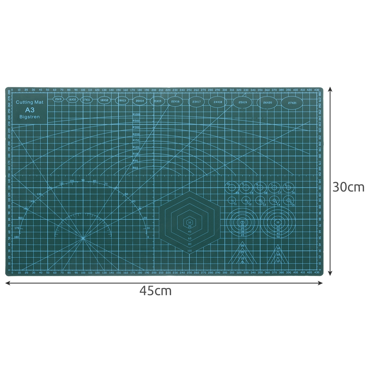 - DWUSTRONNE NADRUKOWANE PODZIAŁKI – dodatkowym atutem są nadrukowane podziałki, linie pomocnicze oraz figury przydatne podczas pracy, każda ze stron posiada inny nadruk.