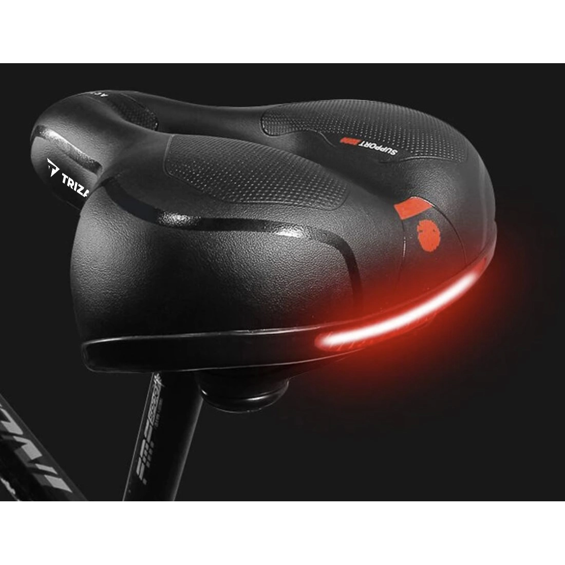 - PASEK ODBLASKOWY DLA BEZPIECZEŃSTWA – siodełko rowerowe wyposażone zostało w pasek odblaskowy, który zwiększa widoczność po zmroku i tym samym znacznie podnosi bezpieczeństwo podczas jazdy nocą.