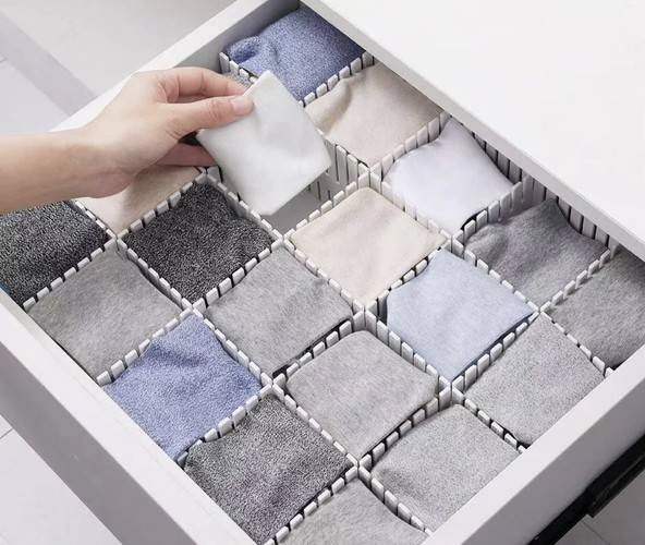Separator do szuflady to akcesorium, które służy do organizowania i dzielenia przestrzeni wewnątrz szuflady, aby zapewnić lepszą segregację i porządek. Organizer jest bardzo prosty w użyciu, wystarczy odmierzyć pożądaną długość i przeciąć. Powtórzyć proces w zależności od wymiarów półki oraz pożądanej ilości przegród. Dzielniki w szybki sposób połączysz ze sobą za pomocą nacięć. Jeżeli zastosujesz większą liczbę przegród cała konstrukcja będzie miała więcej przegród.