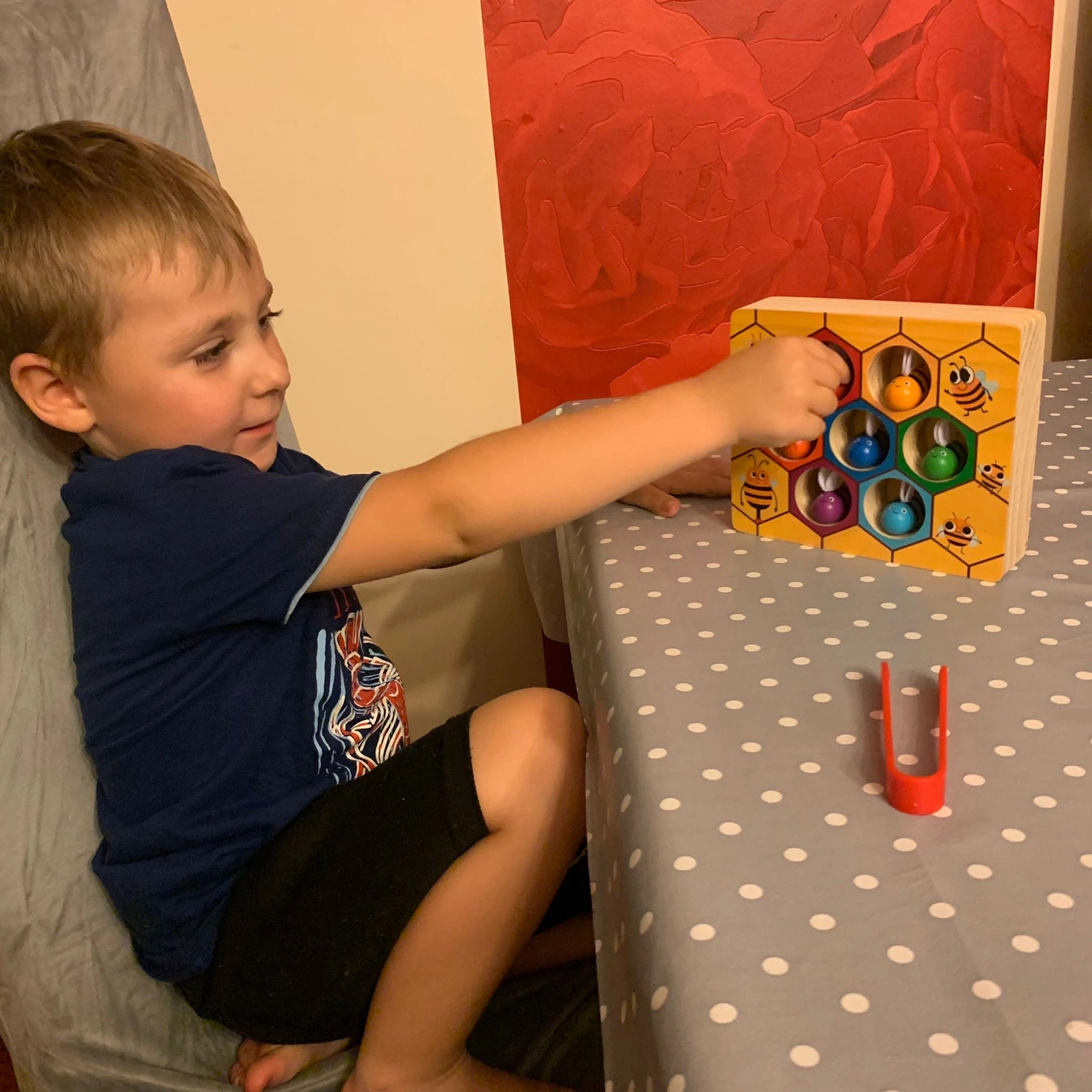 Dziecko najlepiej uczy się poprzez zabawę. Drewniana gra złap pszczółkę niewątpliwie wzbudzi uśmiech na twarzy dziecka, jak również pomoże rozwinąć m. in. umiejętności motoryczne (ruchowe) oraz wzrokowe. W zestawie znajdują się plaster miodu, pszczółki oraz pęseta. Ich oryginalny kształt sprawia, że zabawa jest interesująca.