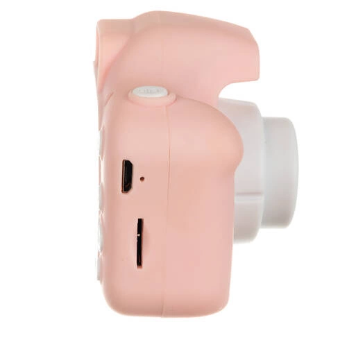 - SPECYFIKACJA - dominujący materiał: guma, pozostałe: ABS) + smycz (dominujący materiał: poliester + POM; kolor: różowy; wiek: 3+; rozdzielczość zdjęć: 3MPix; rozdzielczość wideo: 1080P, 720P, VGA; dodatkowa nakładka: imitacja kotka; pojemność aparatu bez karty: na 50 zdjęć; aparat do robienia selfie; karta pamięci w zestawie: miniSD 32GB; długość przewodu USB-C: 68 cm; wygaszacz ekranu: tak; automatyczne wyłączanie: tak; menu w różnych językach: tak; akumulator 600mAh; materiał ABS; czas ładowania: 2h; czas pracy ciągły: 2h; czas pracy przerywany: 4-6h, wymiary: 5/10,5/6cm, waga aparatu: 0,057kg; waga z opakowaniem: 0,245kg.