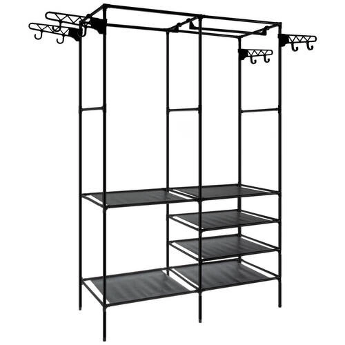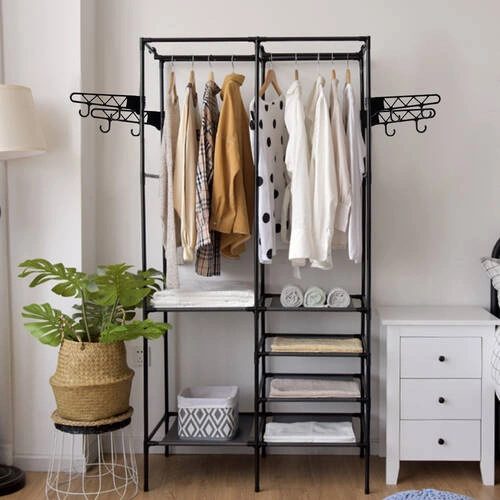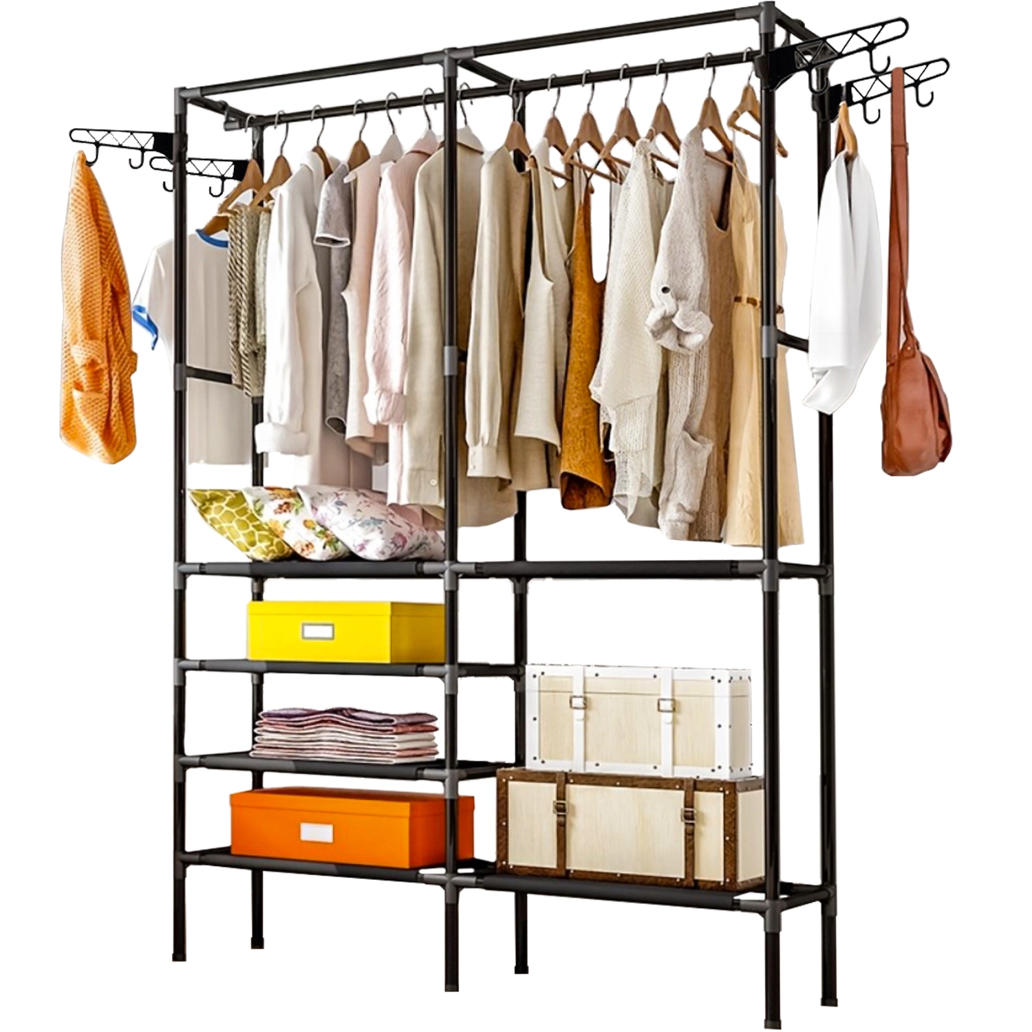 ✔️ pojemność XXL - drążek do wieszaków, 6 półek na ubrania lub akcesoria oraz 8 bocznych haczyków zapewniają miejsce na kurtki, torebki, szaliki, a nawet buty czy organizery, to praktyczne i pojemne rozwiązanie typu all-in-one