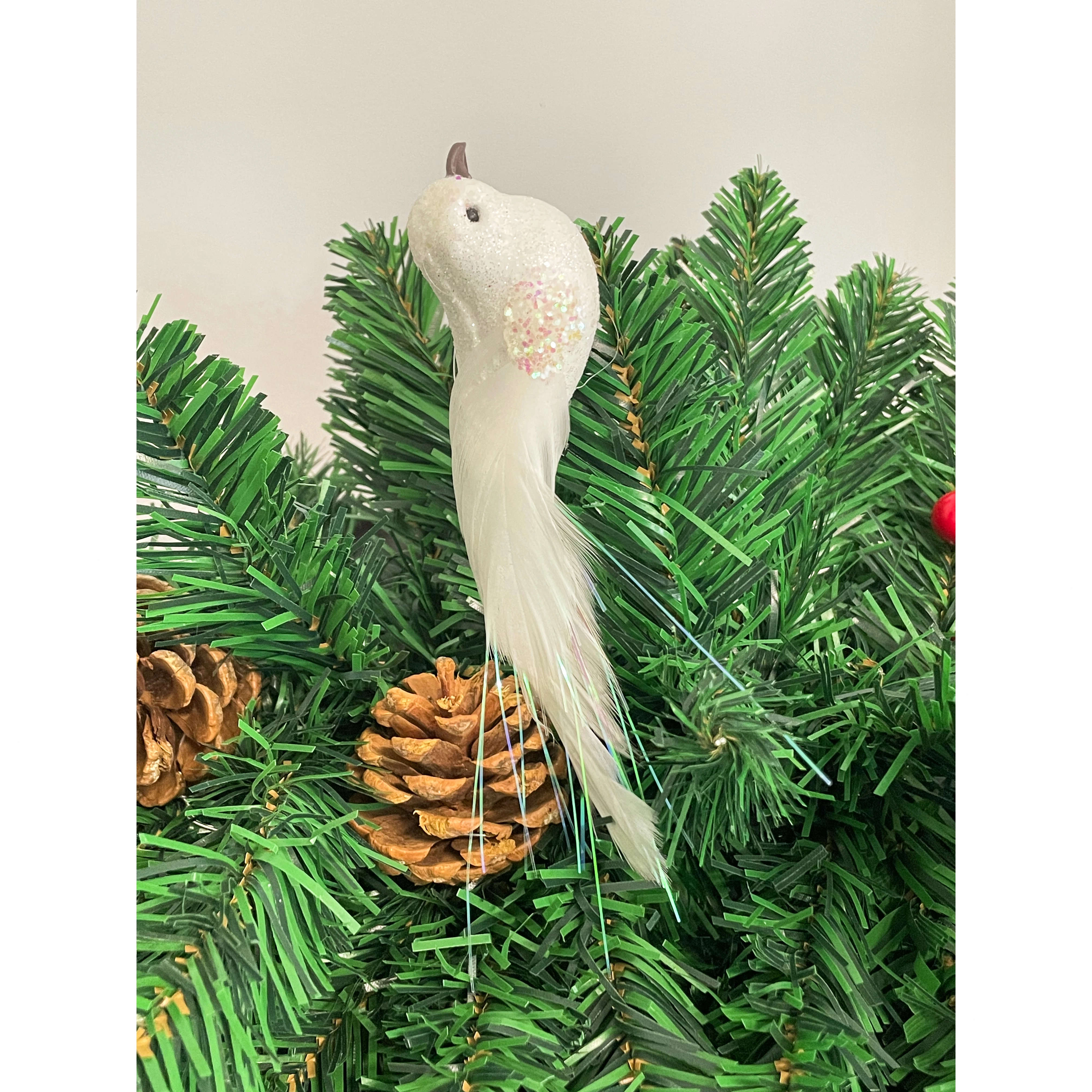 - OGONY Z PIÓR - ogony tych pięknych ptaszków zostały wykonane z piórek, co dodaje im naturalności i autentyczności. Ich delikatne sylwetki i błyszczące wykończenie sprawiają, że są idealnymi dodatkami do świątecznych dekoracji, bukietów kwiatów czy gałęzi drzew.