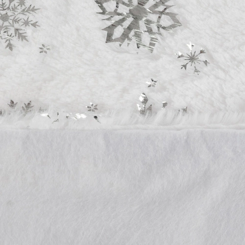 - OZDOBNE SREBRNE GWIAZDKI I ŚNIEŻYNKI – dywanik posiada nadrukowane ozdobne gwiazdki i śnieżynki. Dodaje to uroku dekoracji świątecznej i wprowadza w zimowy nastrój.
