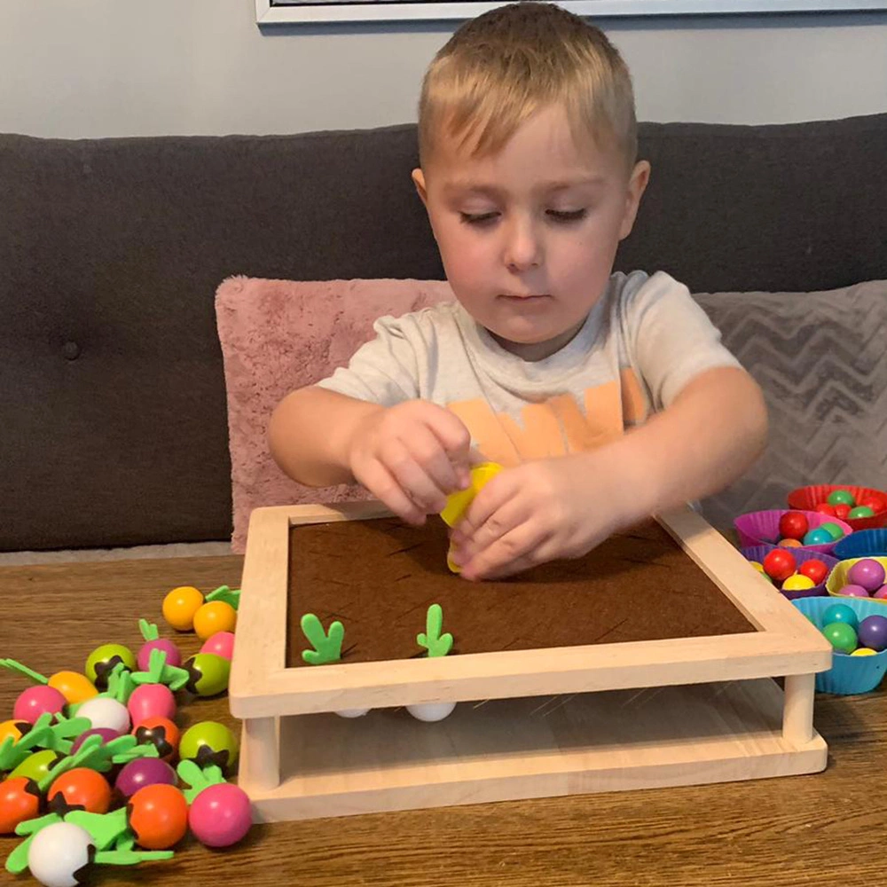 - DOSKONAŁA DO ZABAWY W OGRODNIKA – drewniane koraliki z filcowym ogrodem to świetny sposób na spędzenie wolnego czasu i rewelacyjną zabawę z rodzicami lub rówieśnikami. Sadzenie warzyw i liczenie koralików to doskonała zabawa na długi czas, która szybko się nie znudzi.