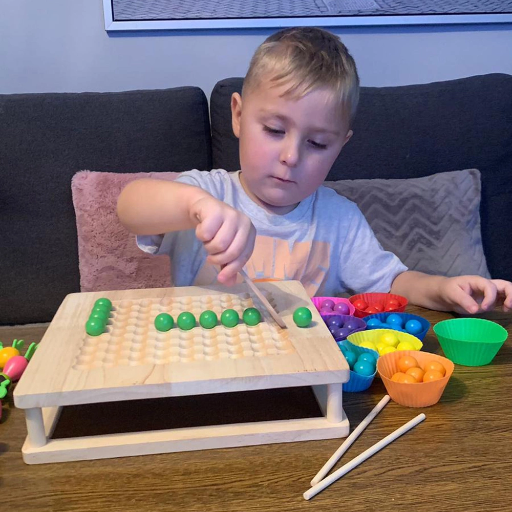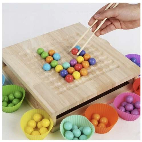 - ROZWIJA – drewniana układanka koraliki to doskonała zabawa dla dziecka i znakomity sposób na rozwijanie jego zdolności manualnych i wyobraźni. Wspomaga również ćwiczenie koordynacji wzrokowo-ruchowej, a także uczy zdolności logicznego myślenia. Dziecko uczy się również koncentracji i cierpliwości.