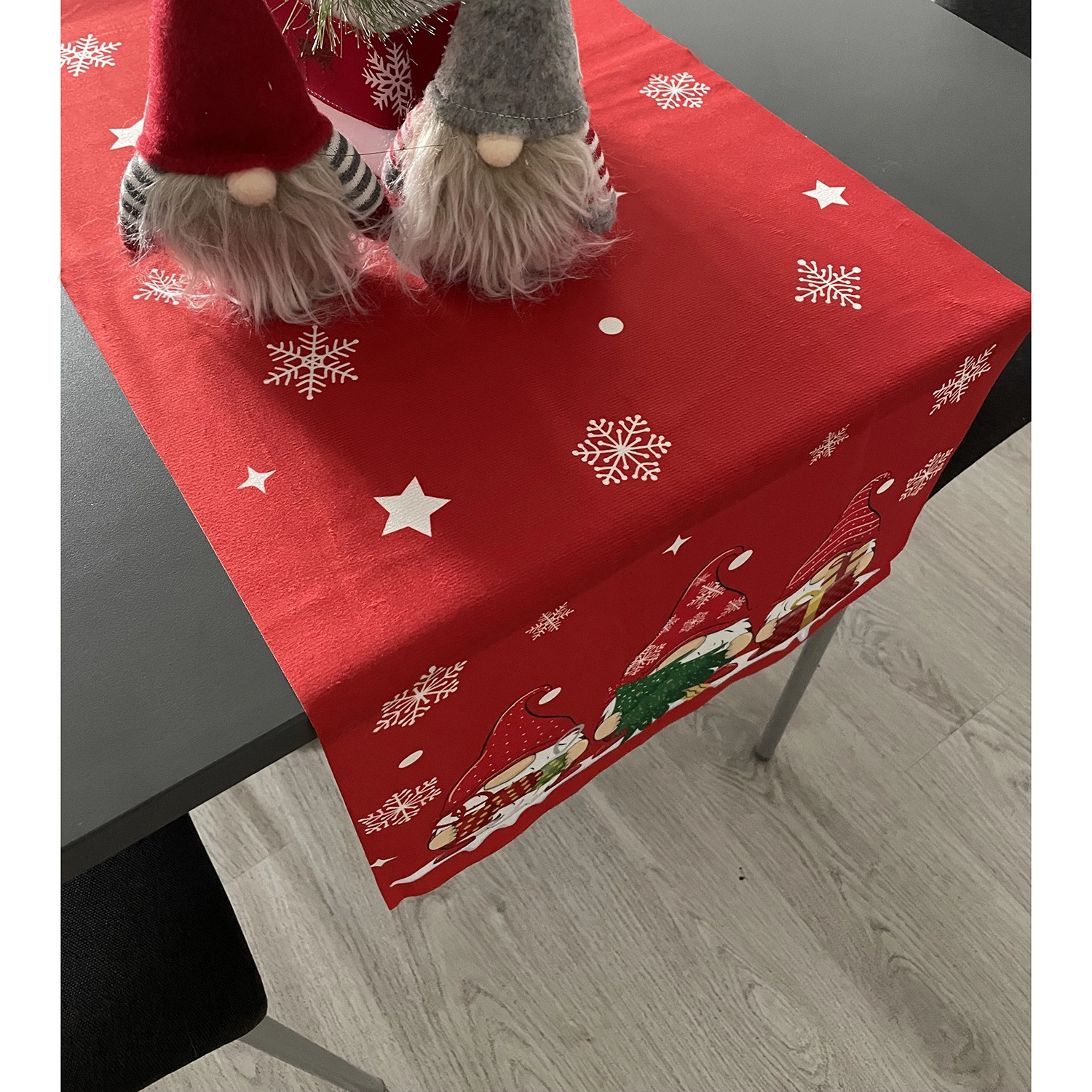 BIEŻNIK ŚWIĄTECZNY NA STÓŁ CZERWONY Z KRASNALAMI 180 x 40 cm