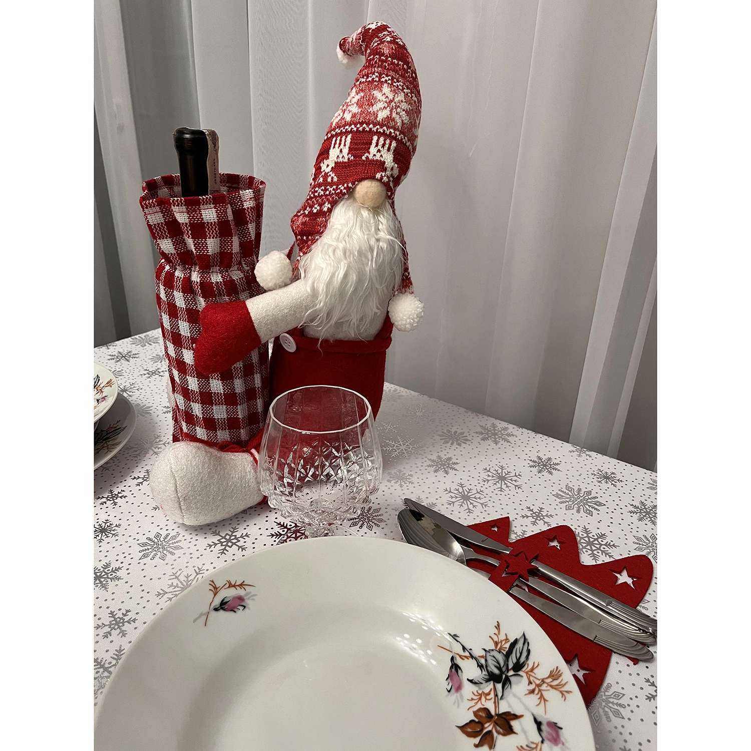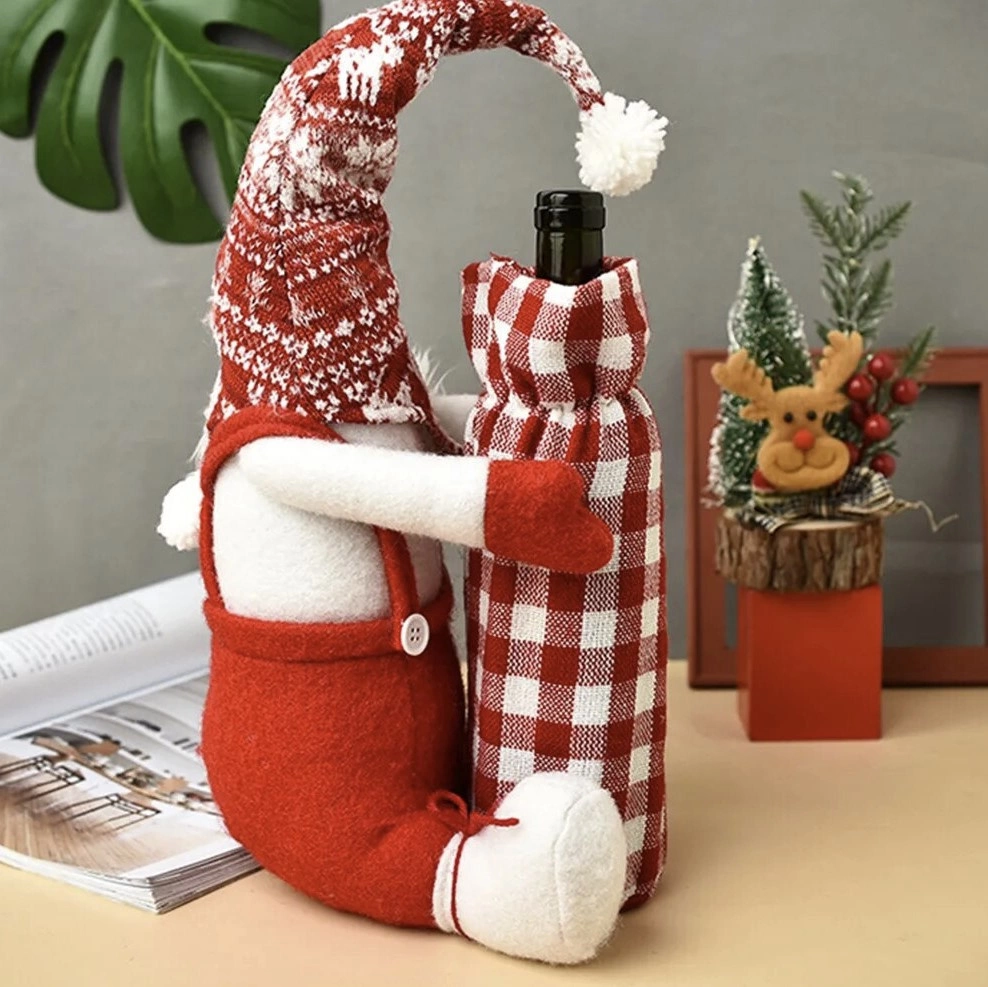 - ŚWIĄTECZNY DESIGN - skrzat w ogrodniczkach z czapką trzymający etui na butelkę jest w świątecznych kolorach. Dzięki temu możesz mieć pewność, że skomponuje się on z innymi dekoracjami na stole.