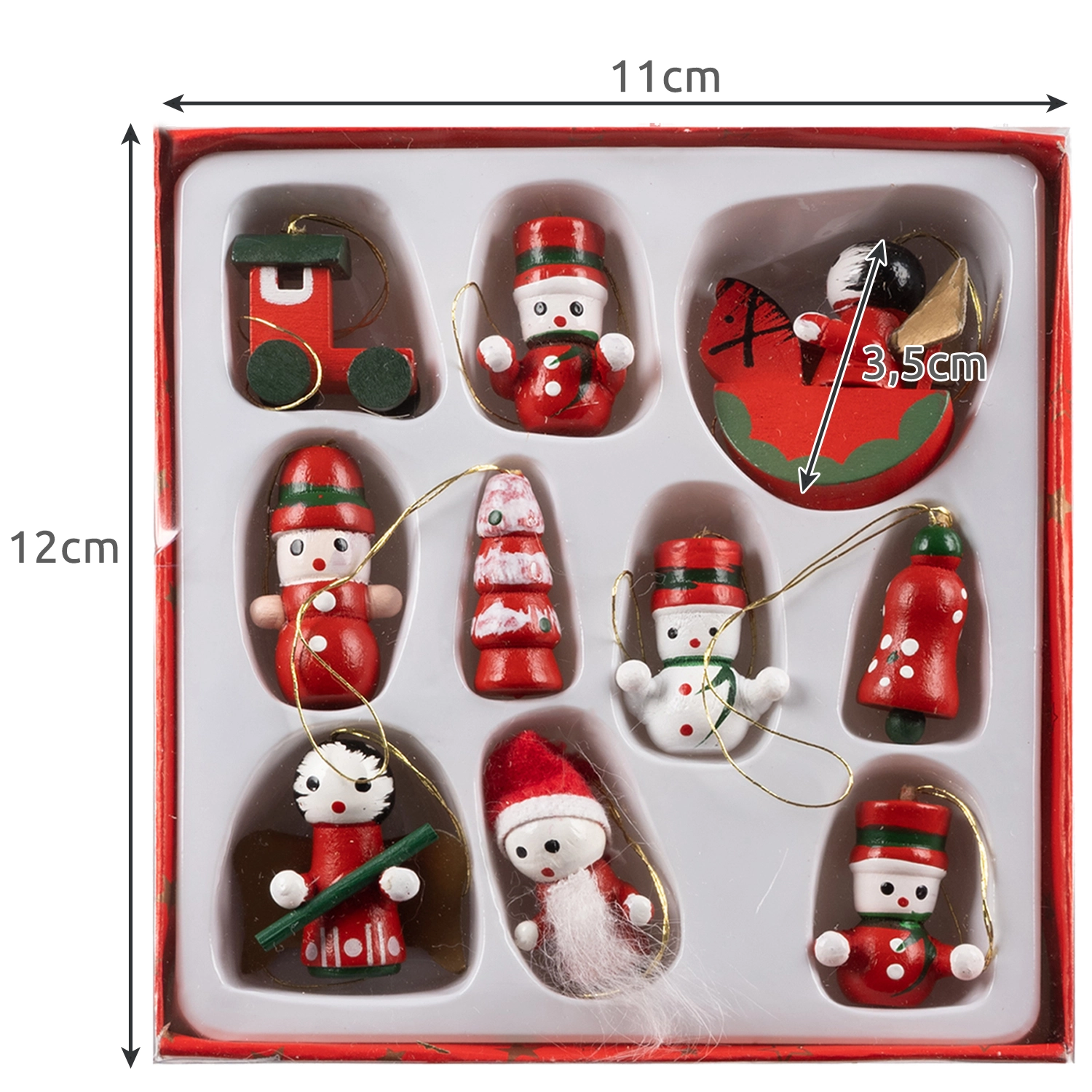 - ZESTAW 10 ZAWIESZEK - te wyjątkowe zawieszki drewniane to ponadczasowa propozycja, która spodoba się fanom klasycznego piękna i prostoty. W skład zestawu wchodzi 10 ozdobnych świątecznych figurek: dzwonek, gwiazdka, Mikołaj, ciuchcia, czy inne motywy kojarzące się z zimowym okresem. Z pewnością dodadzą one uroku każdej świątecznej aranżacji.