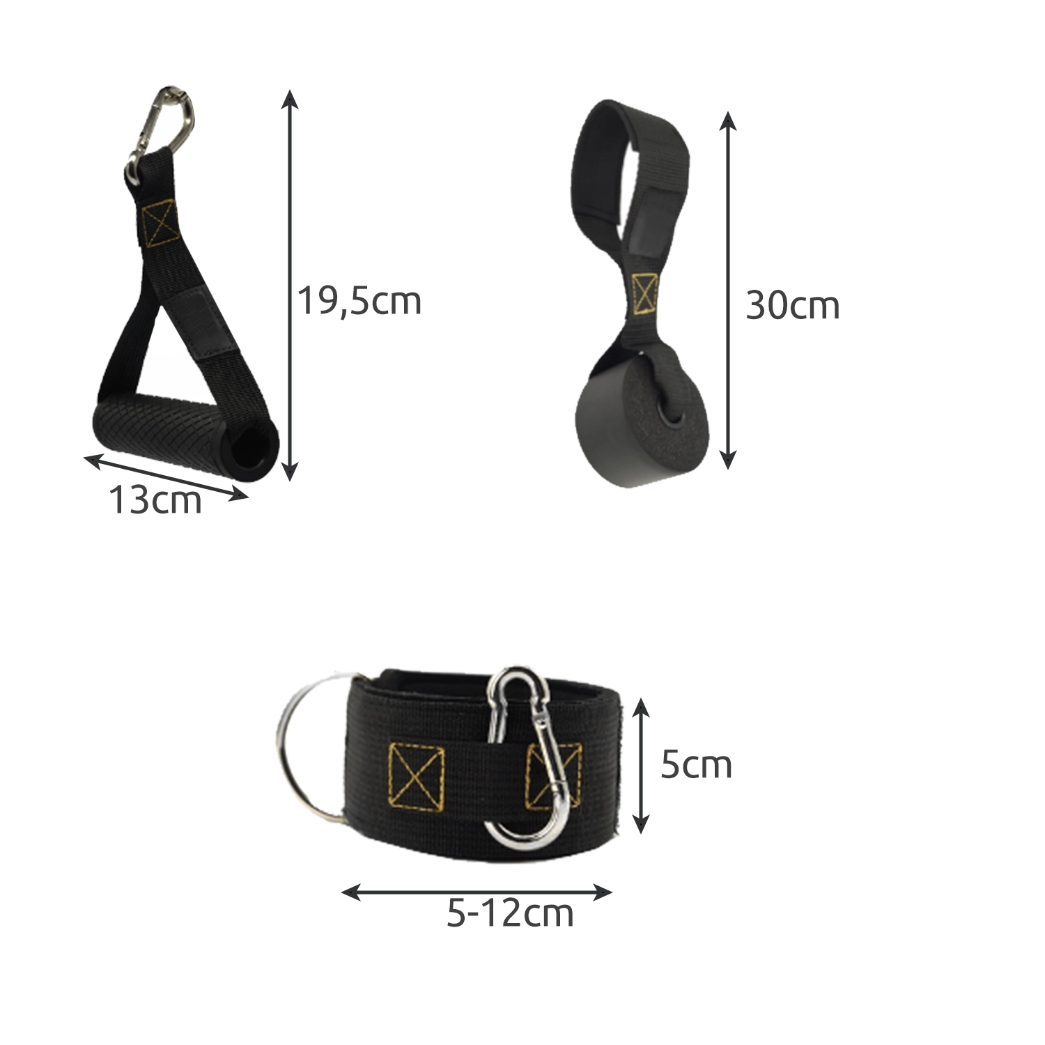 - SPECYFIKACJA - materiał: lateks, pozostałe: poliester + stal nierdzewna + pianka; ilość gum: 5 szt; opór: 5,10,15,20,25 kg; wymiar uchwytu do ręki: 19,5 x 13 cm; wymiar uchwytu do drzwi: 30 cm; wymiar uchwytu na nogi: 5 x 5-12 cm; waga zestawu 0,678 kg, waga w opakowaniu: 0,773 kg.