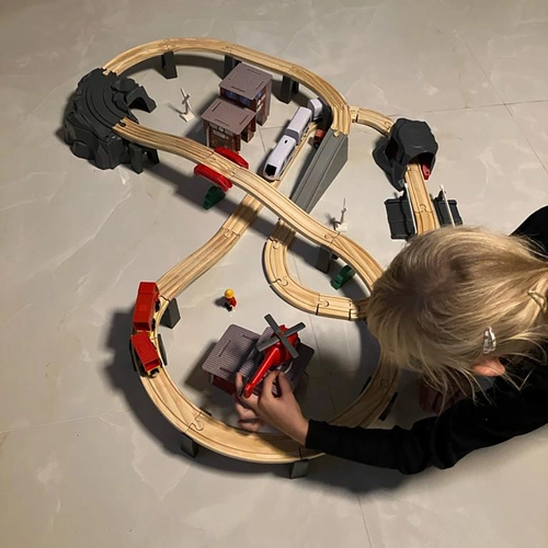 - DUŻY ZESTAW 70 ELEMENTÓW – zestaw składa się z 70 elementów precyzyjnie wykonanych i ładnie wykończonych, które można układać według własnego pomysłu. W komplecie znajduje się m.in tor, pociąg osobowy, straż oraz helikopter, zestaw drzewek i znaków, ludziki. Elementy pociągu łączą się na magnesy. Magnesy są mocne – nie puszczają nawet podczas podniesienia całego zestawu do góry.