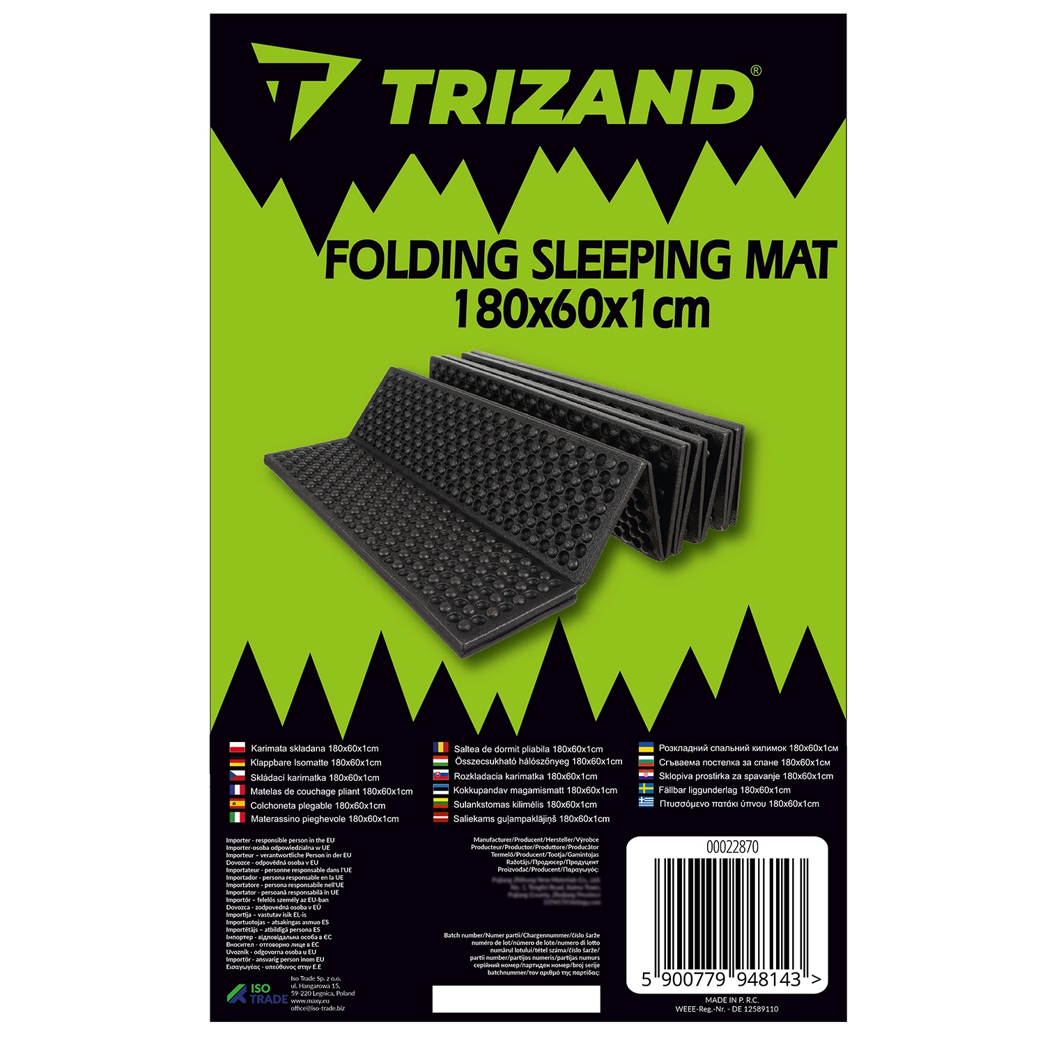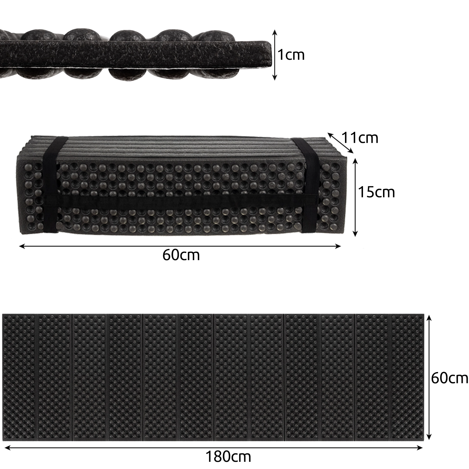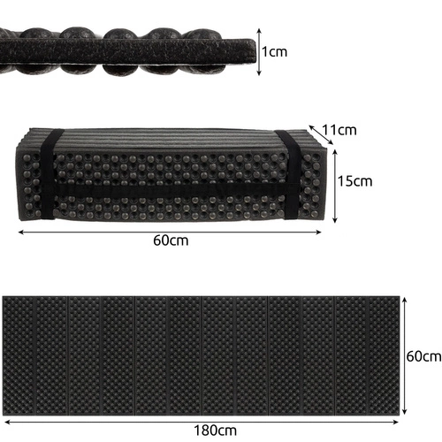 - SPECYFIKACJA – materiał: EVA; łatwe składanie: tak; wodoodporna; wymiary: 180 x 60 x 1 cm; wymiary po złożeniu: 15 x 60 x11 cm; waga: 0,324 kg; waga w opakowaniu: 0,355 kg.