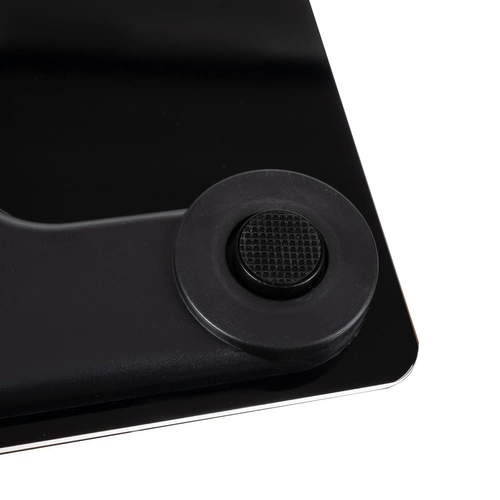 - SPECYFIKACJA - materiał: szkło, pozostałe: PP + guma + stal nierdzewna; kolor: czarny; dopuszczalna waga pomiaru: do 180 kg; zasilanie: 2 x AAA (w zestawie); wymiary: 26 x 26 x 2,2cm; waga: 0,900 kg; waga z opakowaniem: 1,050 kg.