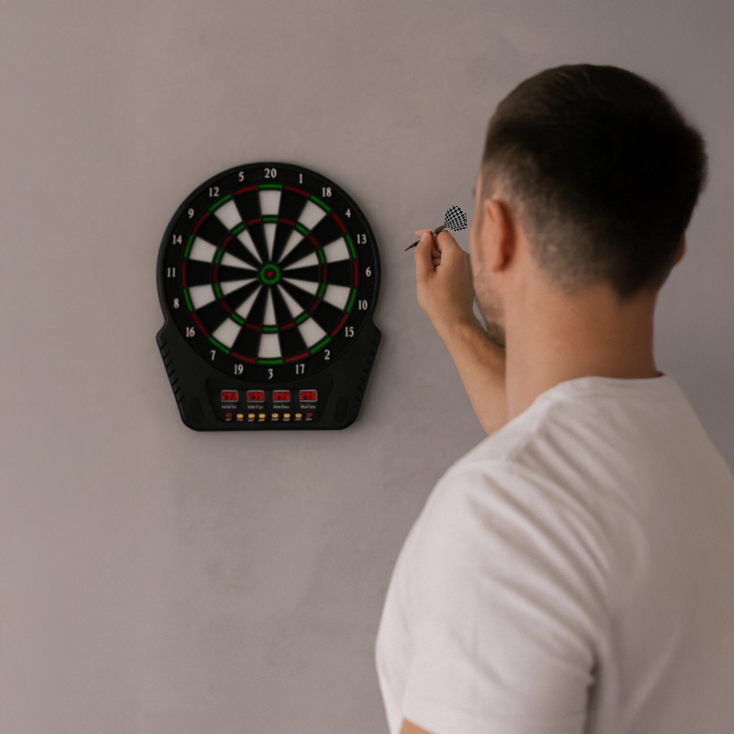 ✅ Tarcza dart wyposażona jest w czytelne, podświetlane wyświetlacze LCD, które zapewniają wyraźną widoczność punktacji każdego zawodnika, niezależnie od oświetlenia w pomieszczeniu. Dzięki temu masz stały podgląd na wynik gry, bez potrzeby ręcznego liczenia czy wątpliwości podczas rozgrywki – wszystko jest widoczne i zautomatyzowane dla maksymalnej wygody i uczciwej rywalizacji.
