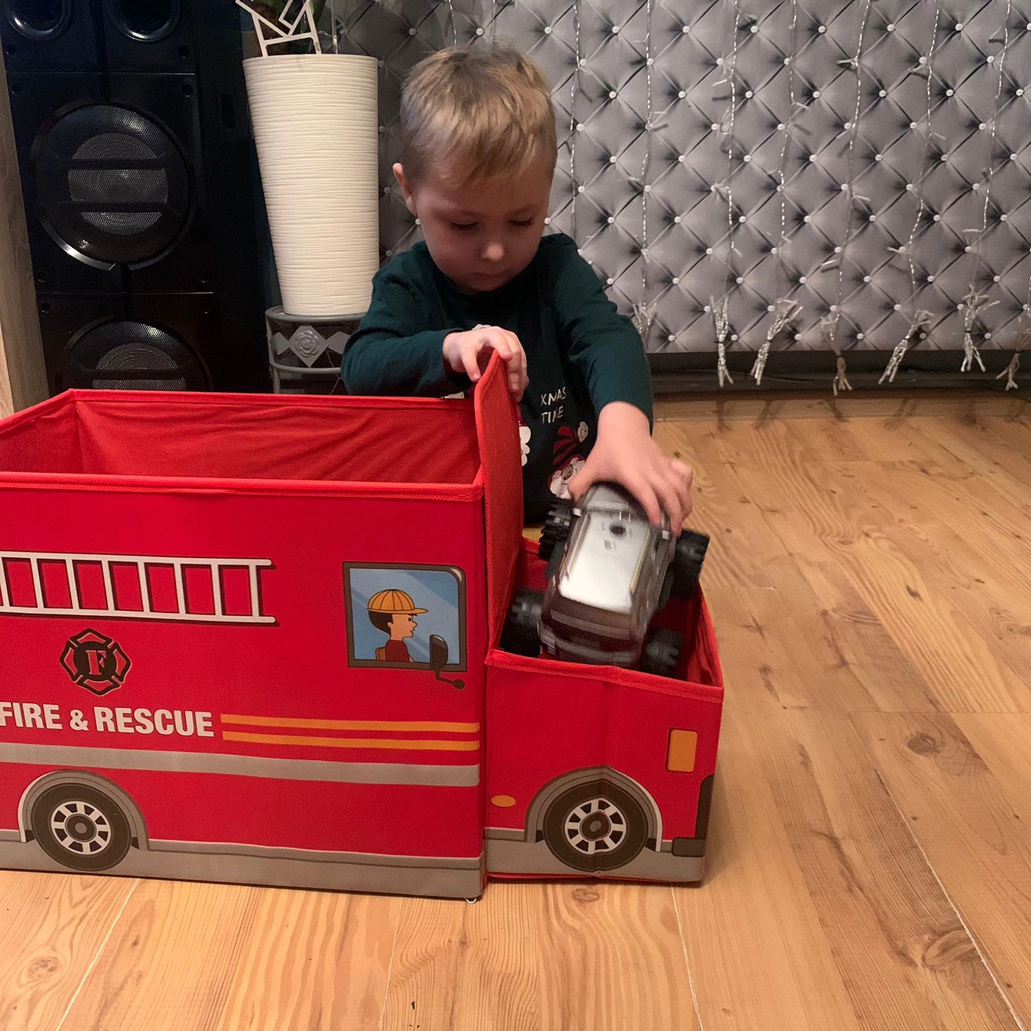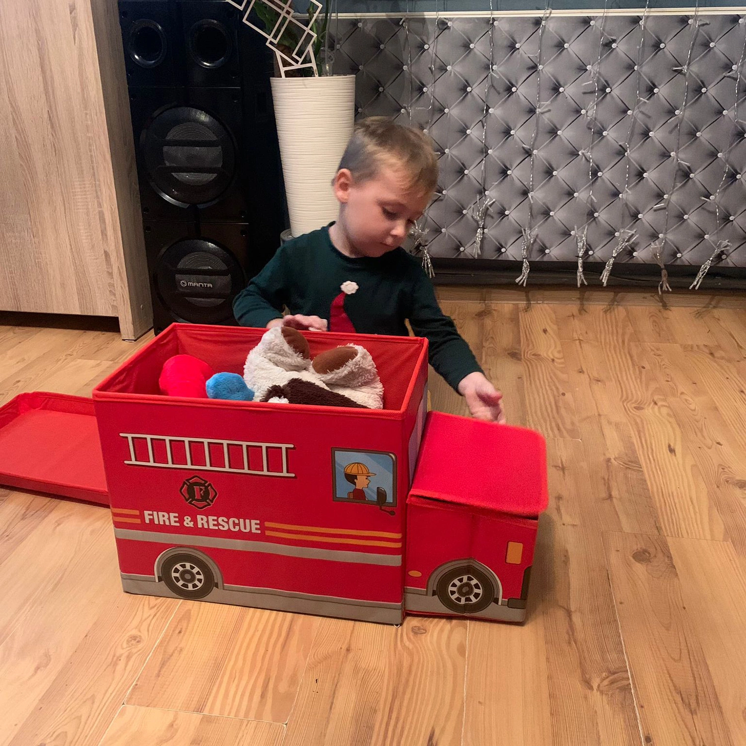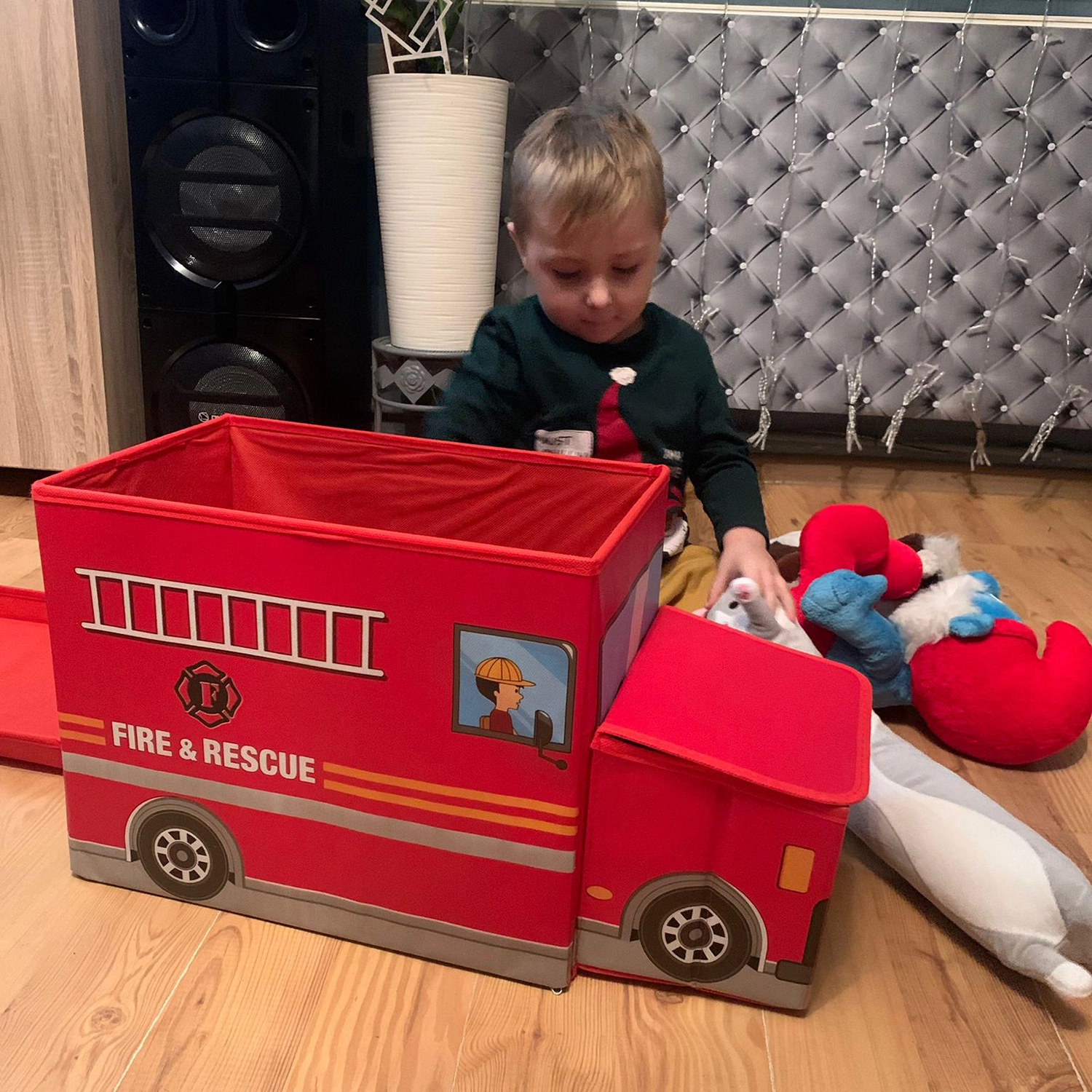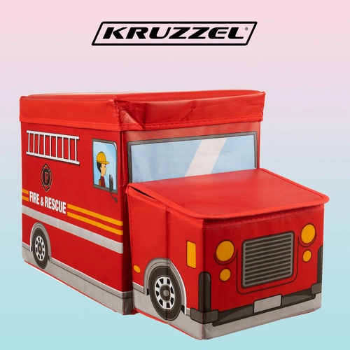 - WÓZ STRAŻACKI - zamykane pudełko na zabawki to imitacja straży pożarnej, każdy fan wozu strażackiego ucieszy się z takiego prezentu. To praktyczny gadżet, który posłuży przez Twojemu dziecku lata. Kolorowy design pasuje zarówno do pokoju dziewczynki jak i chłopca.