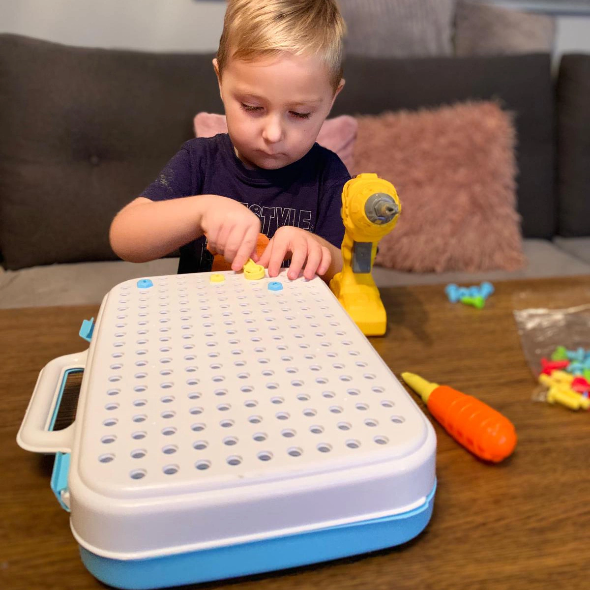 ✅ INTERAKTYWNA WKRĘTARKA - zasilana na 2 baterie przenośna wkrętarka poradzi sobie z wkręcaniem śrubek z zestawu. Dodatkową zaletą wiertarki jest bezpieczeństwo! Nie zrobi dziecku krzywdy, ponieważ obraca się w 1 stronę z odpowiednią prędkością i tylko gdy naciskasz przycisk.
