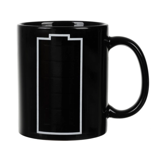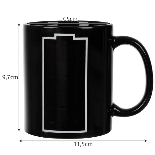 - TU DZIEJE SIĘ MAGIA - wysokiej jakości, ceramiczny kubek posiada magiczne właściwości. Jego magia pojawia się w chwili zalania go wrzątkiem. Kontur baterii widoczny na kubku na twoich oczach zaczyna się ładować. Stopniowo, patrząc od dołu, każdy wyżłobiony segment baterii zmienia kolor na zielony ukazując w pełni naładowaną baterię. Magiczny kubek sprawi, że zawsze będziesz wiedział ile pozostało Ci energii.