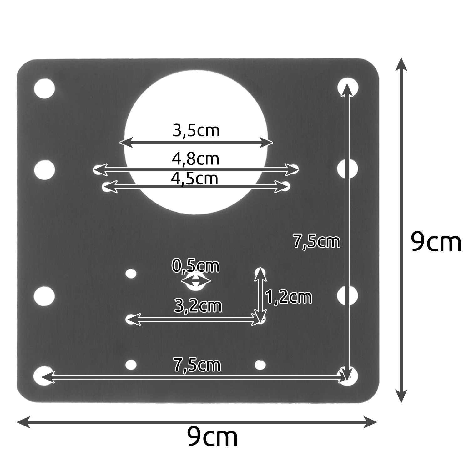 - SPECYFIKACJA - materiał: (stal nierdzewna) + wkręty - 24szt o długości 16mm (żelazo pokryte powłoką niklową); ilość otworów: 20; uniwersalny: tak; prawy/lewy: tak; długość śrub: 1,5cm; grubość płytki: 1mm; wymiar: 9 x 9 cm; waga: 129 g; waga w opakowaniu: 165 g.