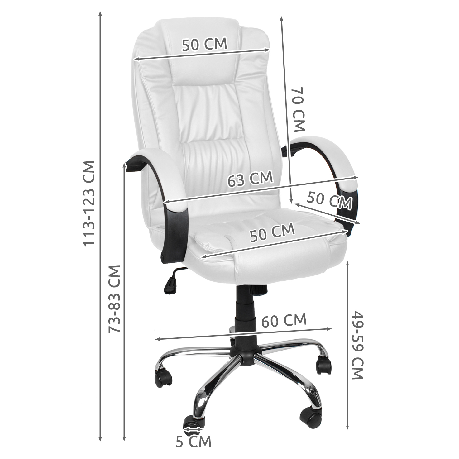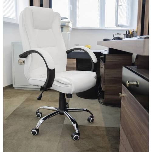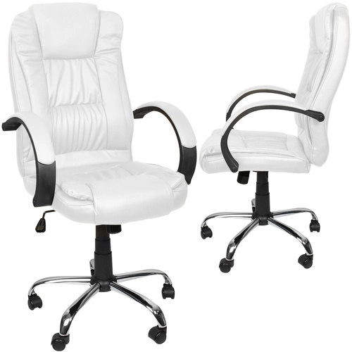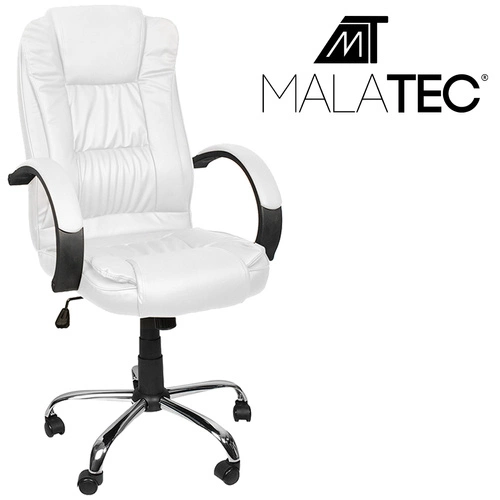 Fotel Obrotowy Biurowy Krzesło Biurowe Obrotowe do Biurka Białe Eko Skóra MALATEC