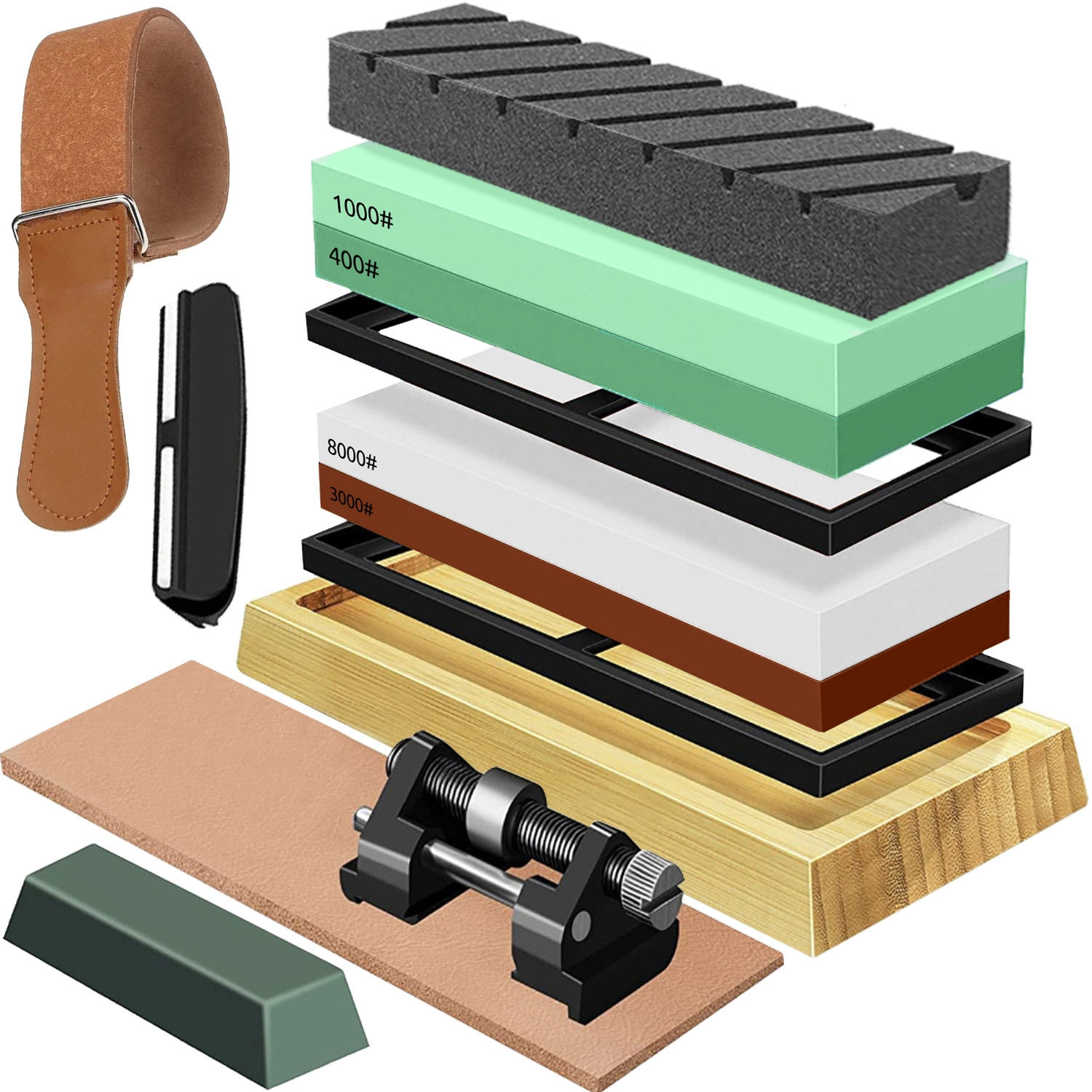 - 5 GRADACJI KAMIENIA + SKÓRA - ostrzenie noża na kamieniu wodnym wymaga zanurzenia kamienia w wodzie na krótki czas przed użyciem, co pomaga utrzymać wilgotność i ułatwia proces ostrzenia. Istnieją różne stopnie ziarnistości kamieni wodnych, które określają ich zdolność do usuwania materiału z ostrza noża. Nasz zestaw jest używany do ostrzenia i wykończenia ostrza, zapewniając mu gładką i ostrą krawędź. Są tu kamienie o gradacji 400 / 1000 / 3000 / 8000, kamień do wyrównywania powierzchni osełek oraz skórzaną podkładkę do polerowania ostrza.