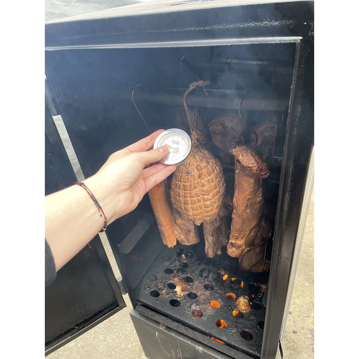 Doskonały analogowy termometr, nie tylko do wędzarni - ma szerokie zastosowanie gastronomi, zarówno do użytku domowego, jak i w restauracjach i w przemyśle spożywczym. Z łatwością sprawdzisz temperaturę wędzonego mięsa (lub innego dania) zapewniając jego doskonałą jakość. Termometr jest wykonany ze stali nierdzewnej. Posiada bardzo praktyczne symbole optymalnej temperatury wędzenia dla określonego typu mięsa. W zestawie jest skuwka do chowania sondy, która może służyć również do jej podtrzymywania - posiada praktyczny "klips" jak w długopisie.