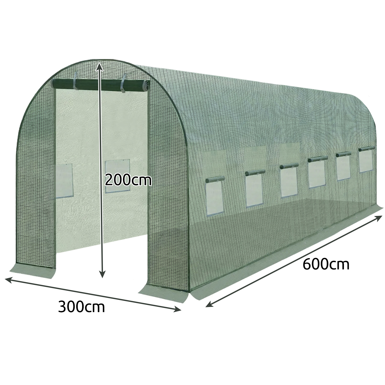 - SPECYFIKACJA – producent: Iso Trade; marka: GARDLOV; kolor: zielony; materiał: PE 140g/m²; pozostałe: poliester + nylon + żelazo + POM; ilość wejść: 1; ilość okien: 12; ilość sekcji: 6; okna z moskitierą: tak; wymiary: 600 x 300 x 200 cm; waga: 6,85 kg; waga w opakowaniu: 6,9 kg.