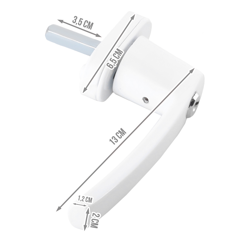 - SPECYFIKACJA – kolor: biały; materiał: tworzywo sztuczne + metal; wymiary zewnętrzne klamki: 13 x 2 cm; waga: 250 g; waga w opakowaniu: 260 g.