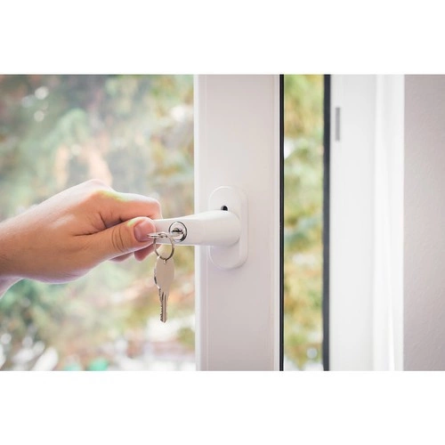 - klamka z kluczykiem znacząco utrudnia próbę włamania poprzez podważenie okna z zewnątrz lub przewiercenie