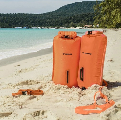 Bojka asekuracyjna do pływania, sygnalizacyjna dmuchana boja 2w1, sucha kieszeń do pływania TRIZAND!