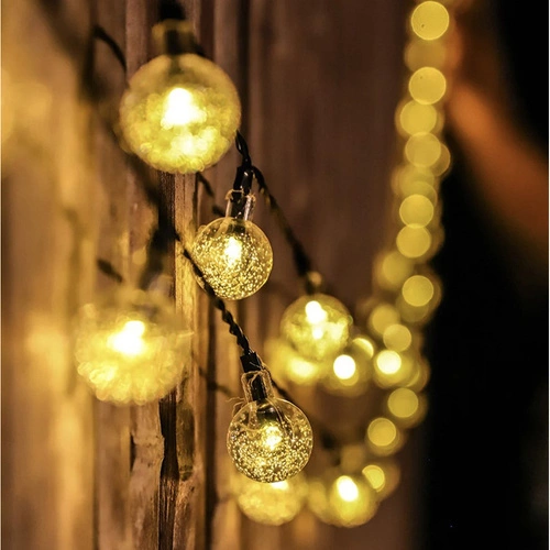 - WYSOKIEJ JAKOŚCI - Girlanda LED solarna to elegancka i funkcjonalna ozdoba, która z pewnością doda uroku każdej przestrzeni. Składa się z 50 kul, z których każda wykonana jest z wysokiej jakości polistyrenu. Materiał ten jest nie tylko trwały, ale również estetyczny, dzięki czemu girlanda stanowi ozdobę nawet wtedy, gdy nie jest włączona. Każda kula jest delikatnie przezroczysta i zawiera w sobie drobne bąbelki powietrza, które dodają jej unikalnego charakteru. Te bąbelki nie tylko wzbogacają wygląd kul, ale również efektywnie rozpraszają światło, gdy girlanda jest włączona, tworząc przyjemną, ciepłą atmosferę. Dzięki czujnikowi zmierzchu, girlanda bez konieczności jej włączania, zaczyna świecić gdy tylko zapadnie zmrok.
