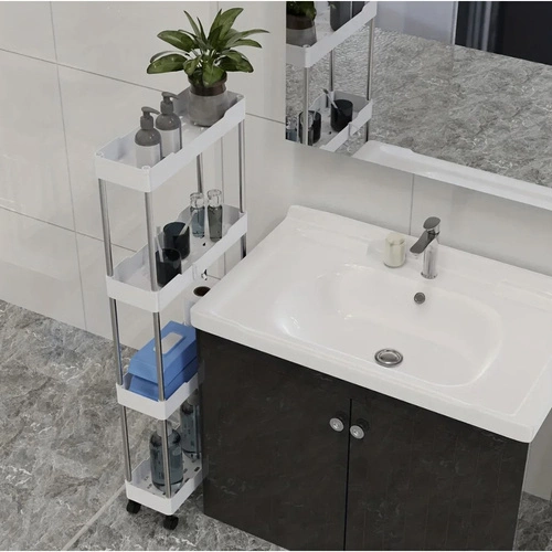 Opinie o Mobilna Półka Regał na Kółkach Szafka kuchenna Łazienkowa Wózek x4 Haczyki RUHHY