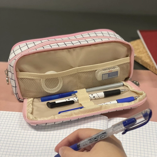 - W DESIGNERSKIM STYLU - trzykomorowy piórnik wyróżnia się eleganckim wyglądem i nowoczesnym designem. Wykonany z wytrzymałego materiału piórnik zapewnia nie tylko długotrwałe użytkowanie, ale także estetyczny wygląd. Świetnie odzwierciedli osobowość i styl użytkownika. Jego elegancki wygląd, czarna kratka i różowe zamki sprawiają, że sprawdzi się również jako kosmetyczka.