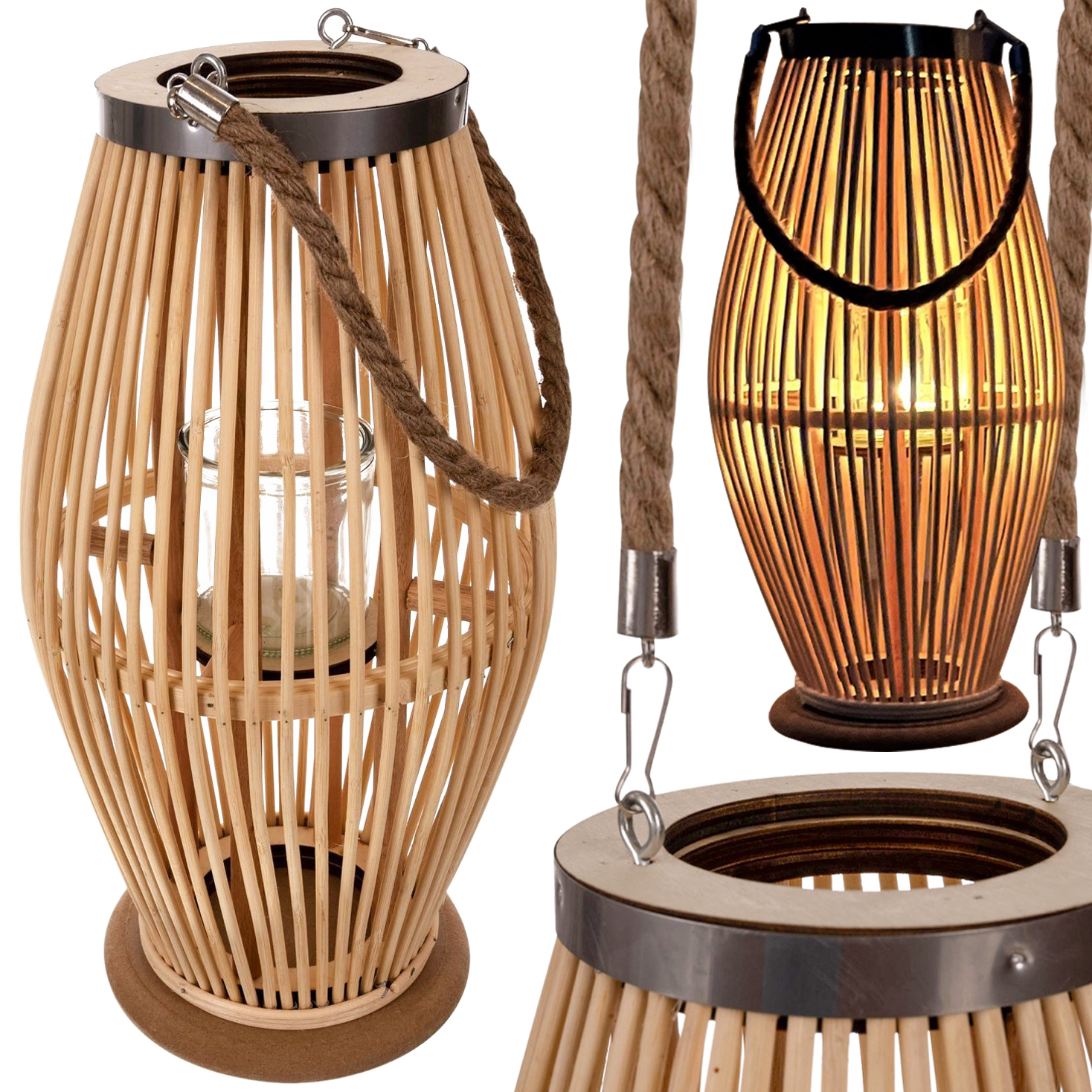 Lampion bambusowy rattanowy na taras ze szklanym kloszem boho GARDLOV!