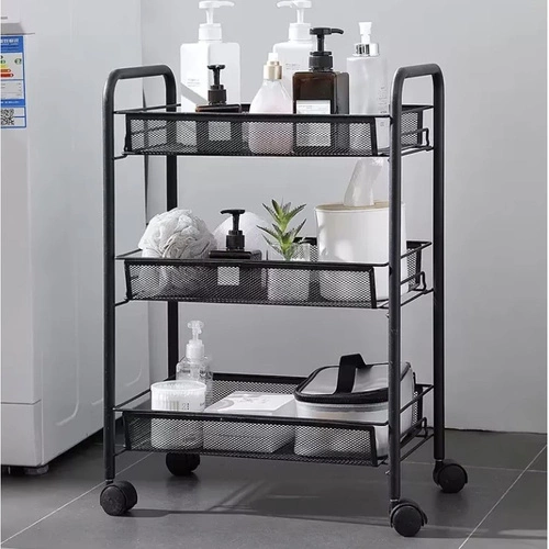 - WYTRZYMAŁA KONSTRUKCJA Z WYSOKIEJ JAKOŚCI ŻELAZA - regał mobilny wykonany jest z trwałego i solidnego żelaza, malowanego proszkowo na elegancki, czarny kolor. Żelazo gwarantuje odporność na korozję i uszkodzenia, co sprawia, że regał jest trwały i idealnie nadaje się do codziennego użytku w różnych warunkach, zarówno w kuchni, łazience, jak i w biurze. Malowanie proszkowe dodatkowo chroni powierzchnię, nadając jej estetyczny, matowy wygląd.