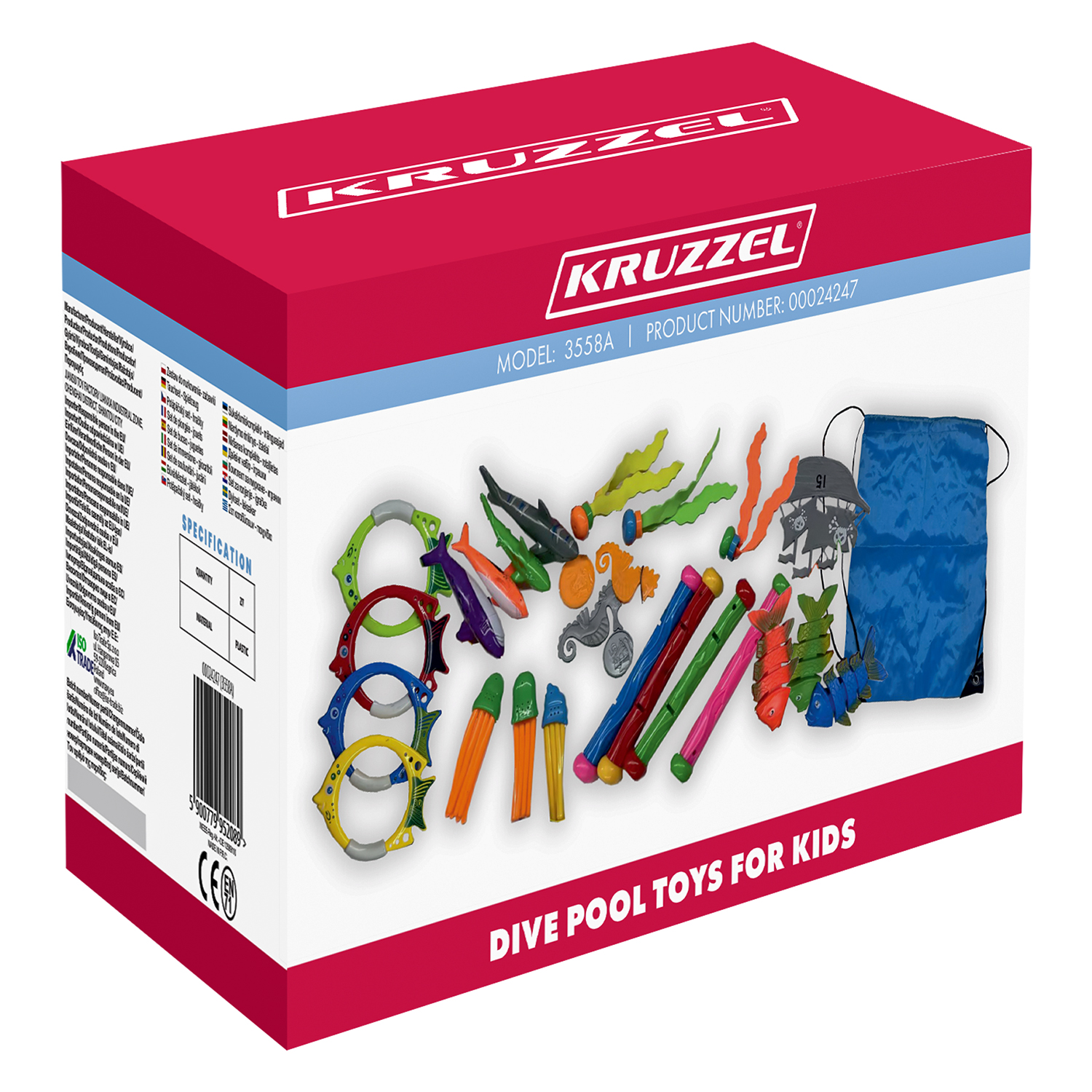 Zabawki do Nurkowania Wody Basenu Wanny Zestaw Kolorowe dla Dzieci + Worek KRUZZEL