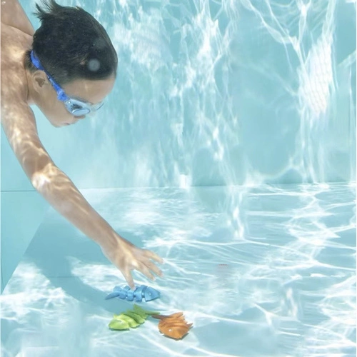- ZABAWKI DO POSZUKIWAŃ POD WODĄ - w zestawie znajdują się 4 duże kolorowe rybki wykonane z PP, które opadają na dno po wrzuceniu do wody, poruszając się wraz z ruchem wody. Na ich ogonach umieszczone są oznaczenia punktów, co pozwala na wprowadzenie elementów rywalizacji podczas nurkowania. Dodatkowo w komplecie są 3 mniejsze rybki wykonane z PVC, które idealnie komponują się z resztą zestawu, dostarczając jeszcze więcej zabawy. 4 torpedy w kształcie rekinów, wykonane z PVC, z oznaczeniami punktów pod płetwą grzbietową, są doskonałe do rzucania i łapania pod wodą. Ich aerodynamiczny kształt pozwala na szybkie poruszanie się w wodzie, co czyni je ulubionym elementem zabawy podczas nurkowania.