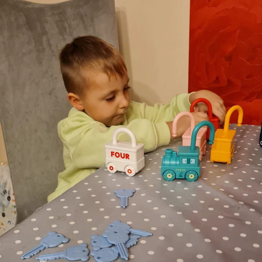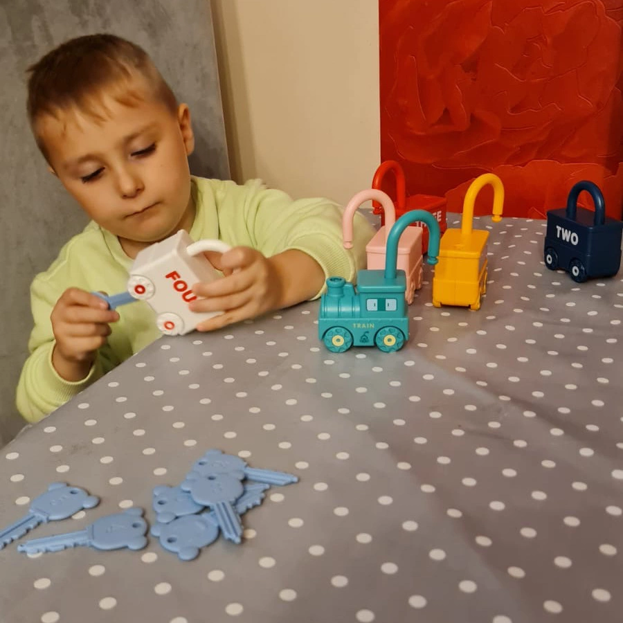 Samochodziki z Kłódkami Kluczami Zabawka Montessori Auta Lokomotywa Pociąg KRUZZEL