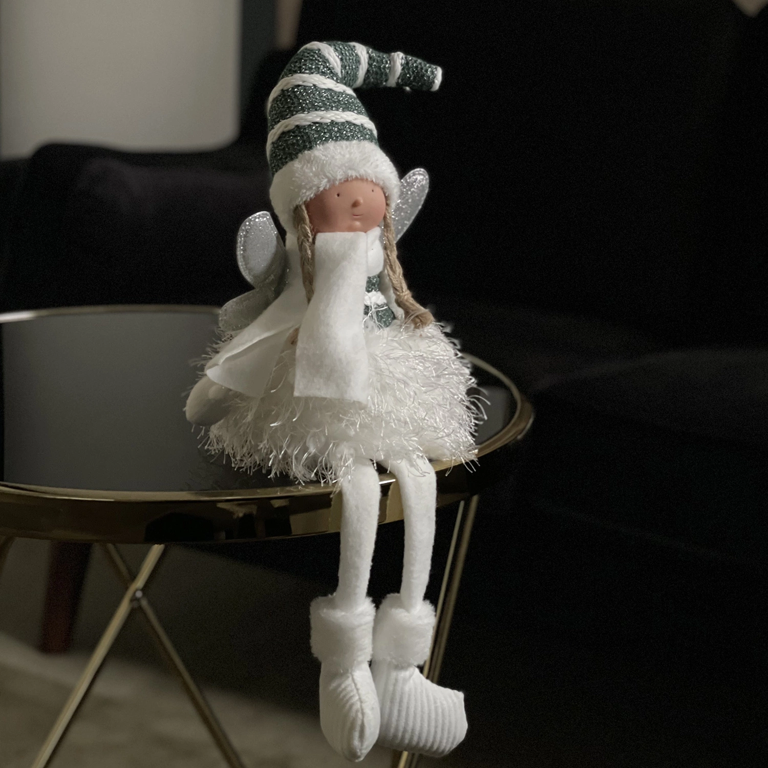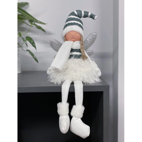 - SIEDZĄCA – wróżka została wyprodukowana z dbałością o każdy szczegół. Dekoracja jest zaprojektowane w taki sposób, aby mogła swobodnie siedzieć na krawędzi półki, parapetu lub innego mebla, dodając wnętrzu lekkości i świątecznego uroku. Świąteczne kolory ubranka będą pasowały do wnętrza niezależnie od stylu.