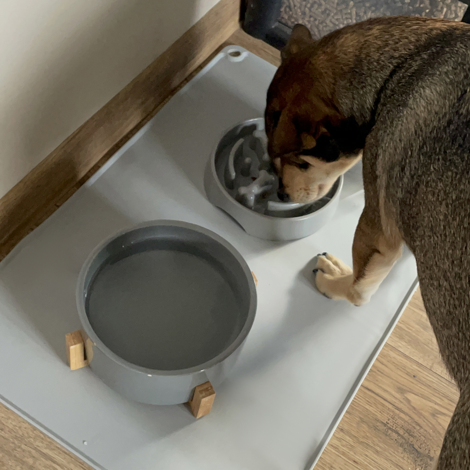 ✔️ antypoślizgowość – podkładka skutecznie zapobiega przesuwaniu się misek, nawet gdy pies je intensywnie, zapewniając stabilność