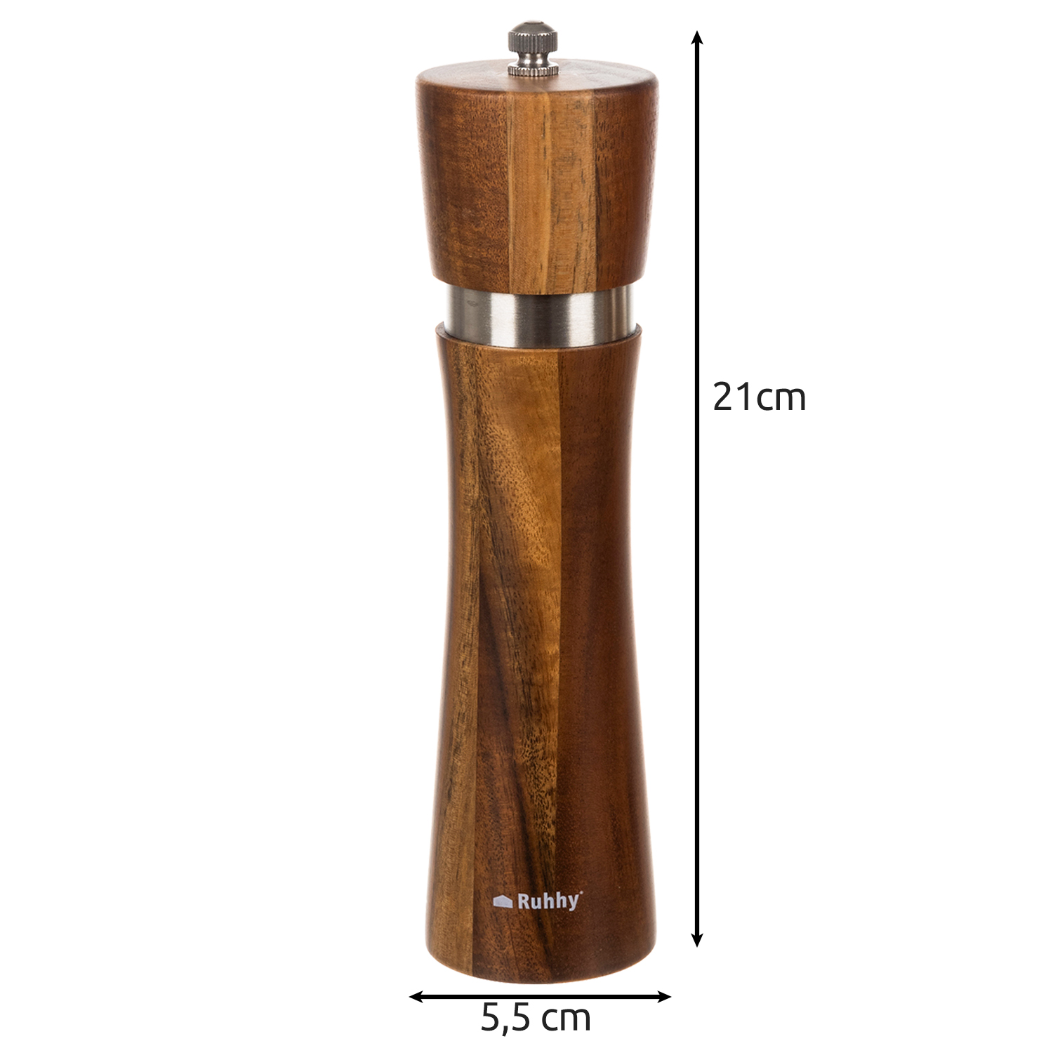 ✔️ łatwość dosypywania przypraw - dzięki wygodnemu napełnianiu od góry, szybko uzupełnisz sól czy pieprz, napełnienie młynka 20 g standardowym opakowaniem pieprzu ziarnistego zajmuje 20 sekund