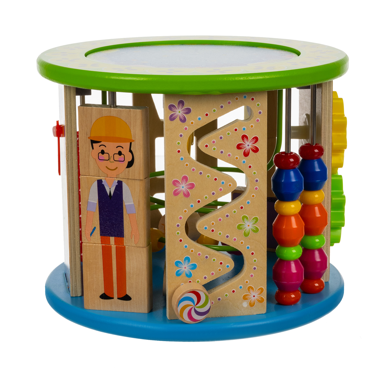 Drewniana kostka edukacyjna dla dzieci z wieloma funkcjami i zabawami!