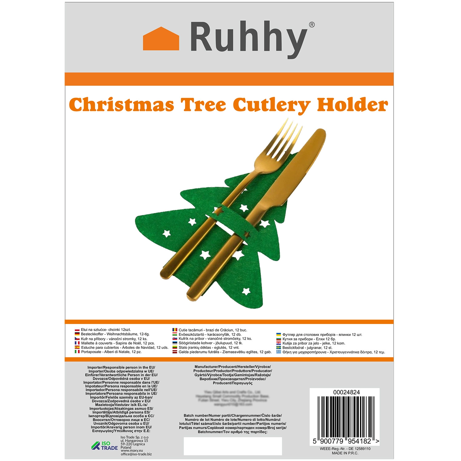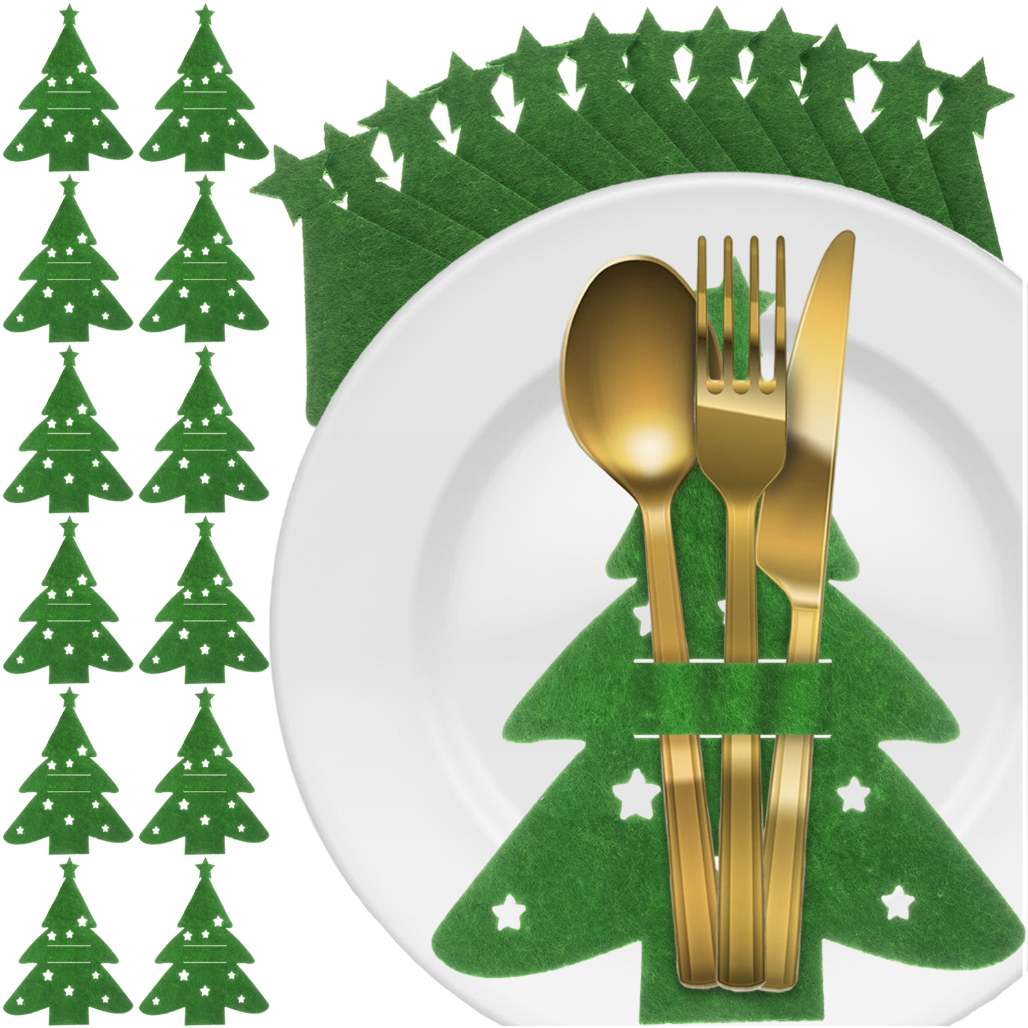 Etui na sztućce świąteczne z filcu, pokrowiec choinka na stół, zestaw 12 sztuk!