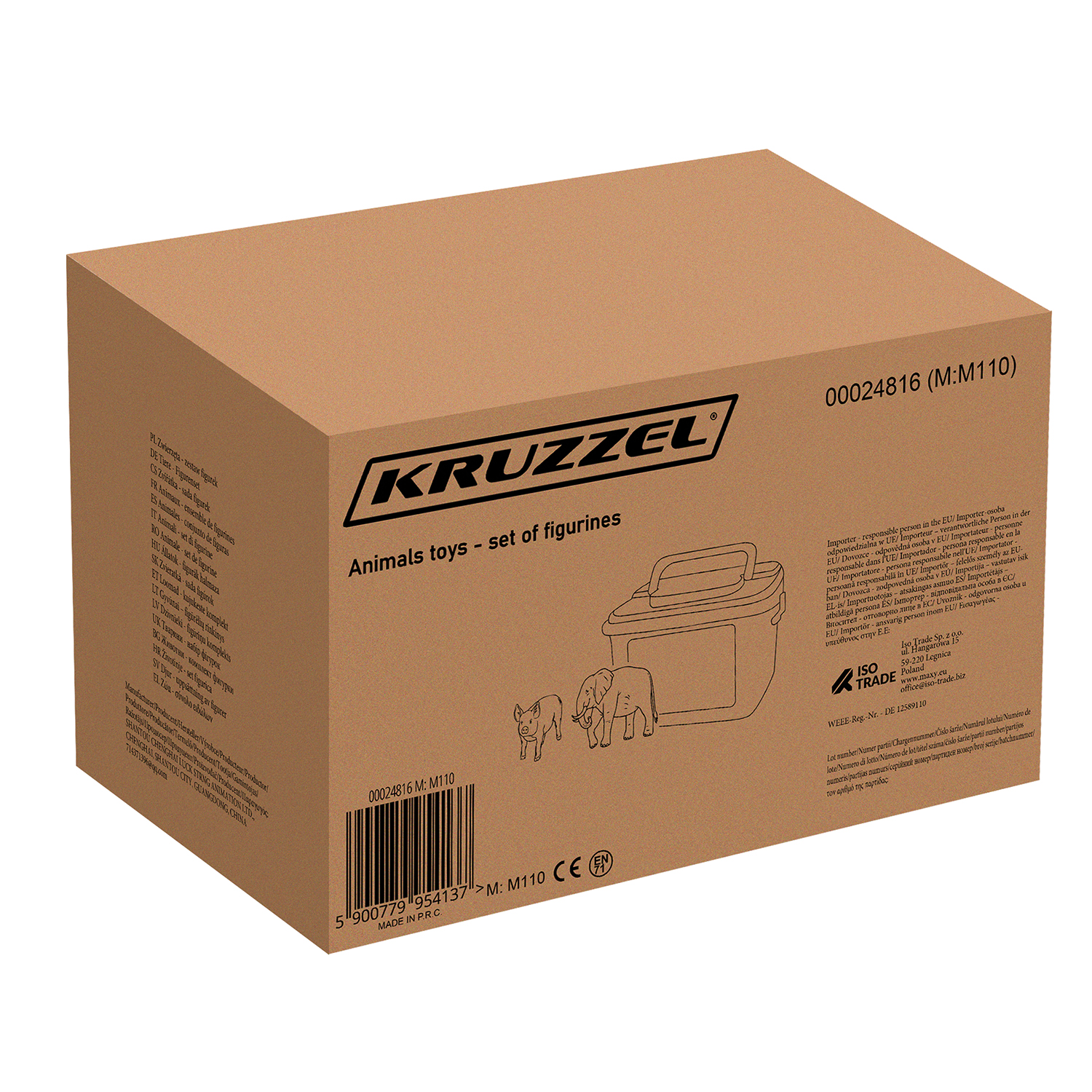 - duże figurki: owca, słoń, koń, żyrafa, krowa, zebra, nosorożec, hipopotam, koza, antylopa, puma, tygrys, knur, lew, wilk, hiena, 2 goryle, 2 niedźwiedzie polarne, 2 pandy, 2 osły