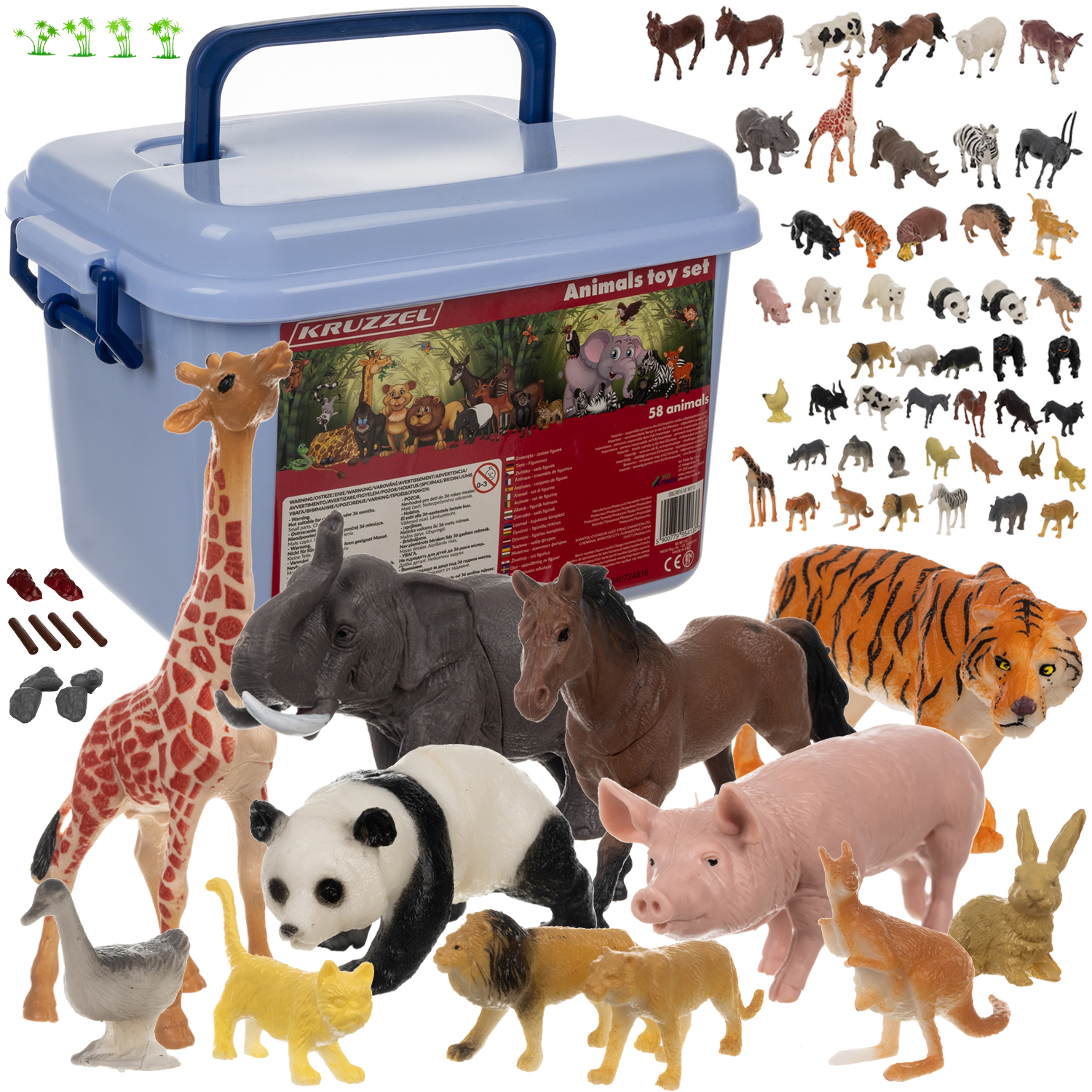 Zwierzęta Zabawki Figurki Zwierzątka Farma dla Dzieci 48 Zwierząt w Etui KRUZZEL