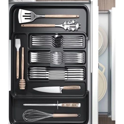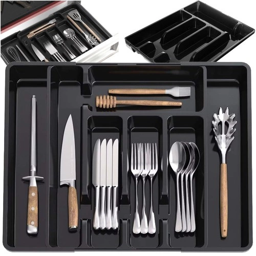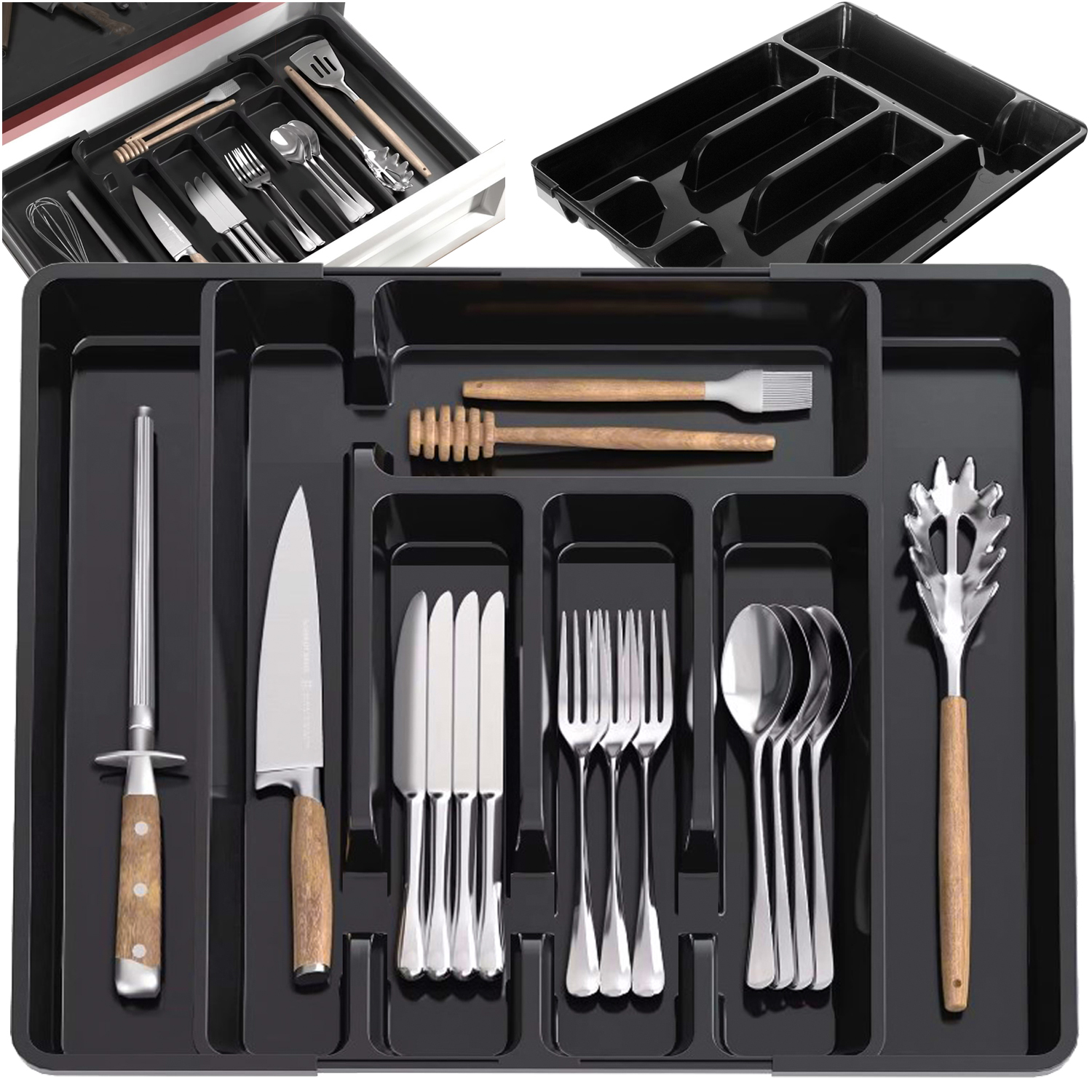 Czarny organizer na sztućce do szuflady kuchennej z rozsuwanym wkładem!